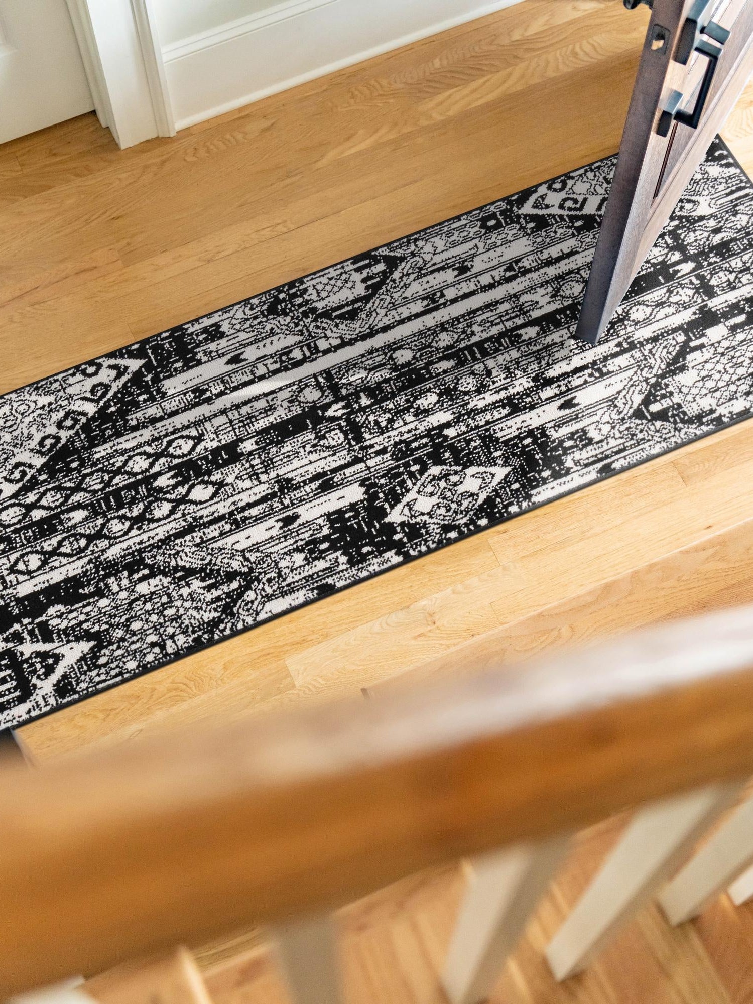 Black and White 2' 2 x 12' Portland Runner Area Rug 85% Polypropylene & 15% Polyester Vintage Distressed Traditional Carpet for Home Decor