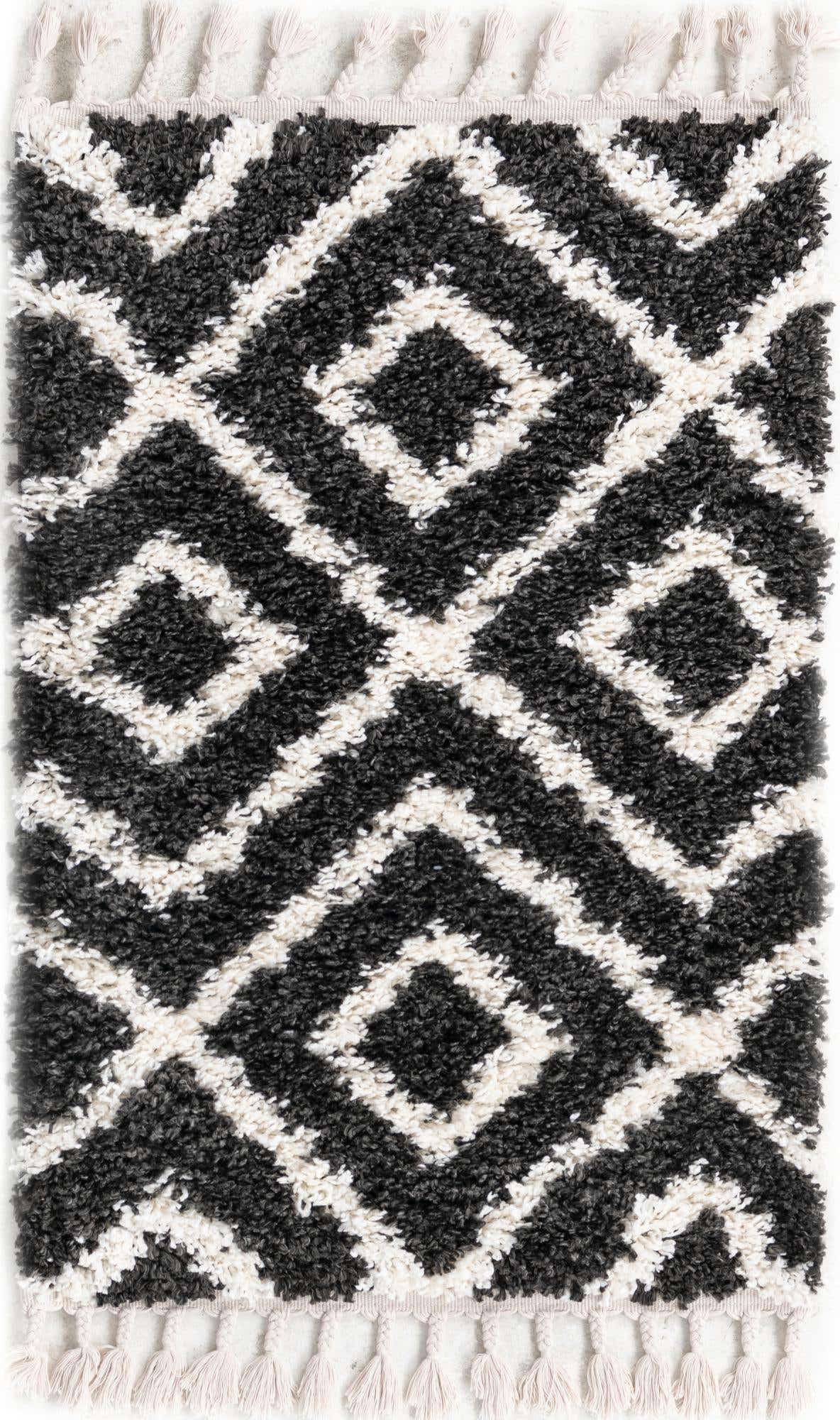 Black and White 2' 2 x 3' Hygge Shag Rectangle Area Rug Thick Soft Touch Fluffy & Plush Shaggy Pile 100% Polypropylene With Jute Backing Modern Carpet