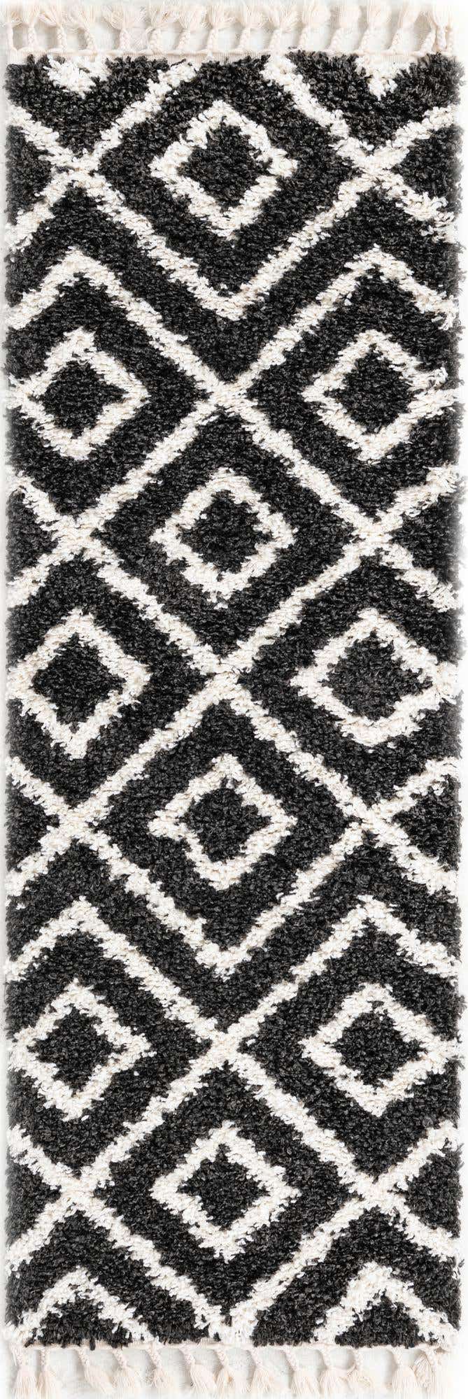 Black and White 2' 2 x 6' Hygge Shag Runner Area Rug Thick Soft Touch Fluffy & Plush Shaggy Pile 100% Polypropylene With Jute Backing Modern Carpet
