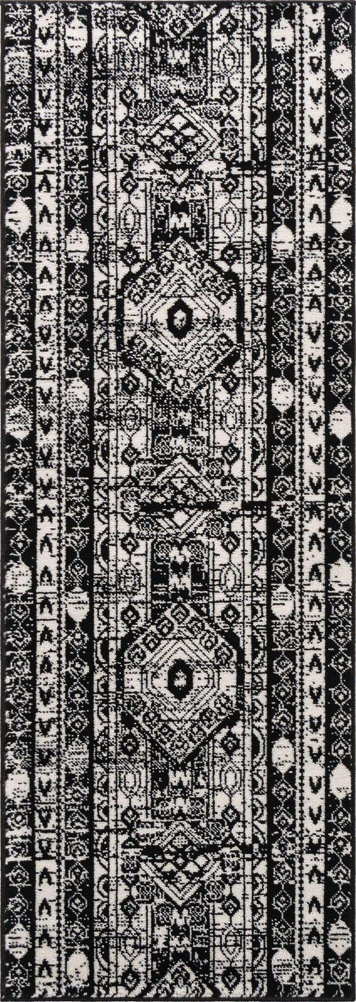 Black and White 2' x 6' 1 Portland Runner Area Rug 85% Poly...