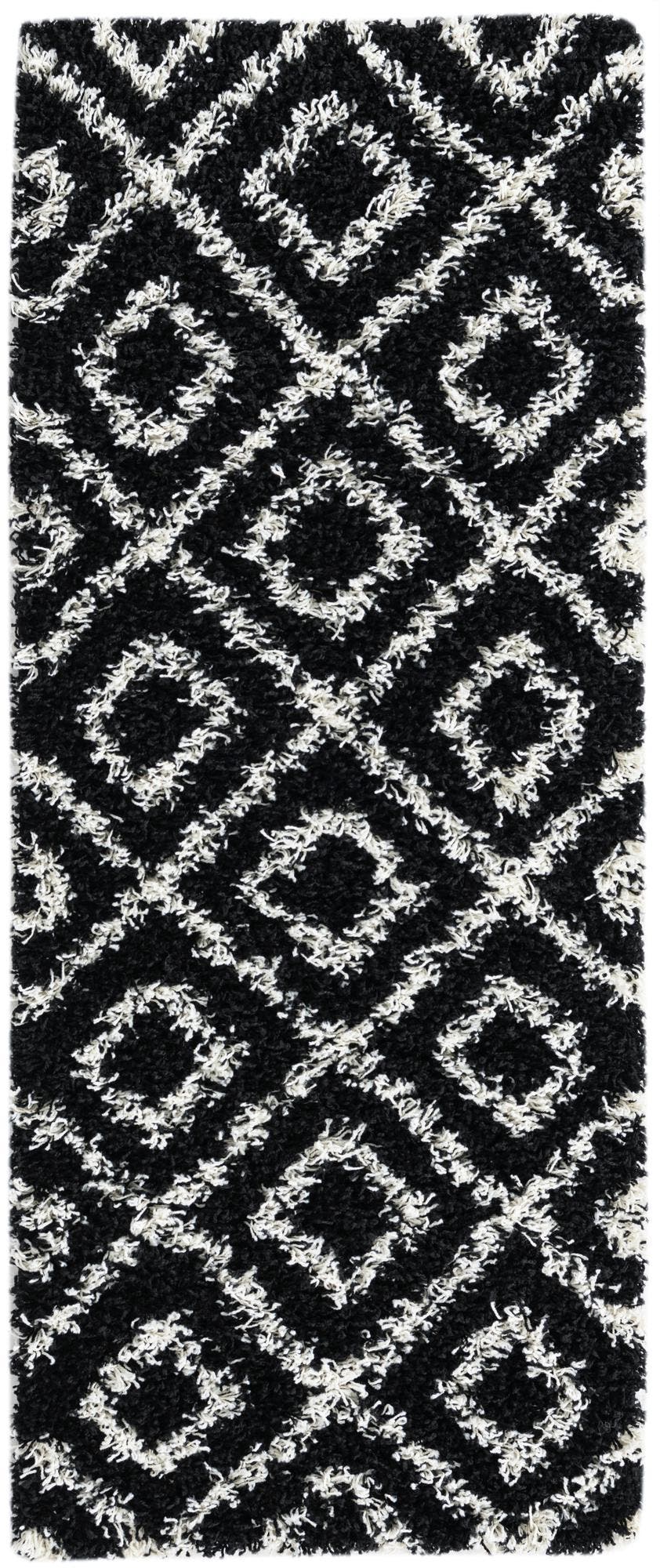 Black and White 2' x 5' Trellis Shag Runner Area Rug Thick ...