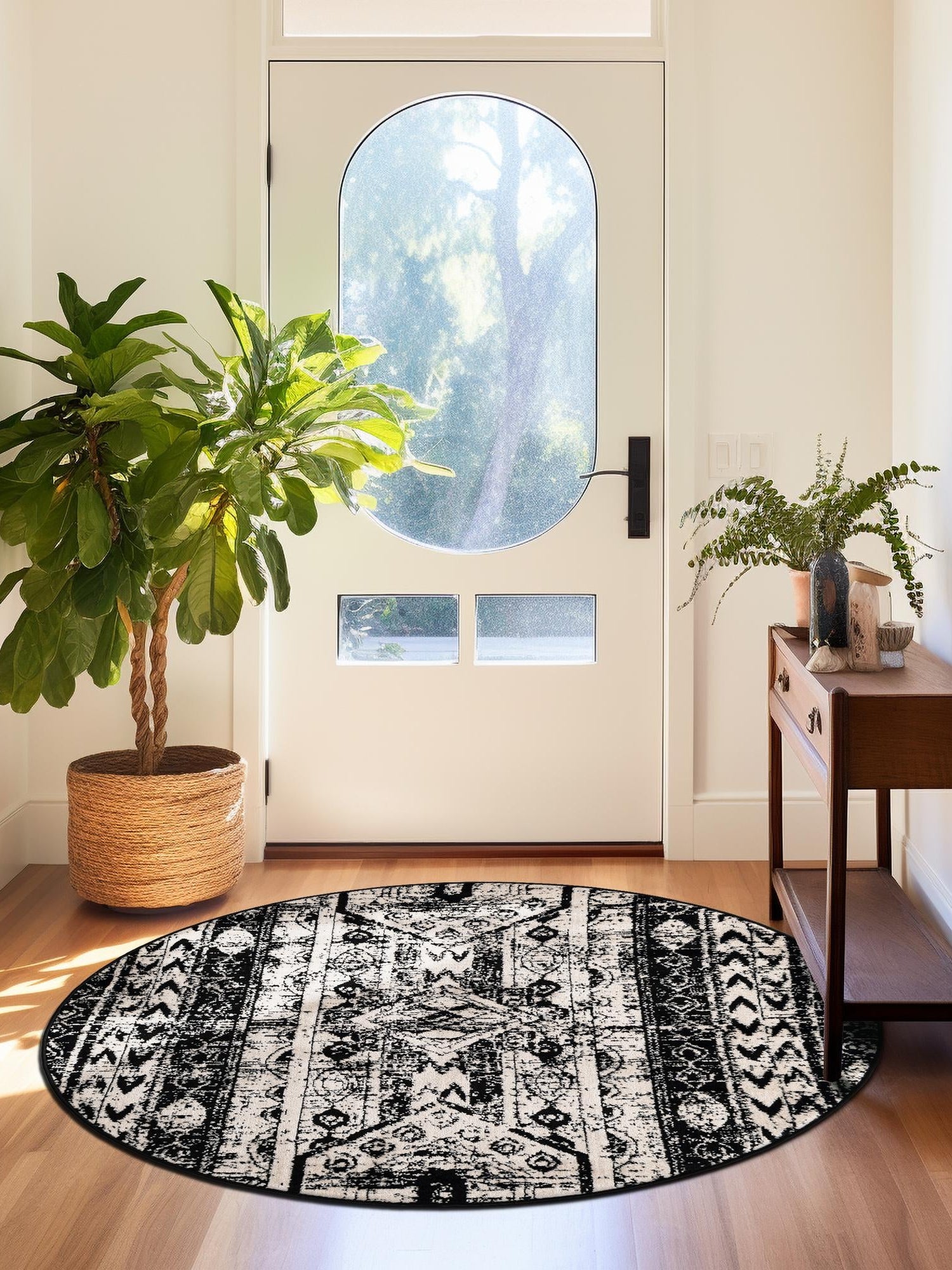 - Stylish Black and White Color Palette: The classic black and white color scheme offers a timeless elegance that fits into any home aesthetic. Whether your style is modern, traditional, or eclectic, this rug serves as a stunning focal point that enhances your interior design. Its monochromatic tones provide a sophisticated backdrop that allows other décor elements to shine.