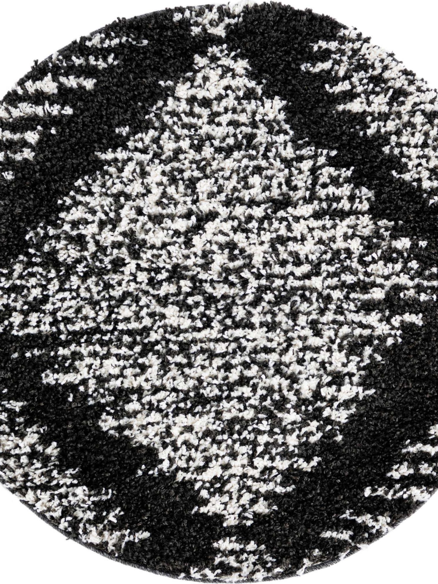 Black and White 3' 3 x 3' 3 Serenity Shag Round Area Rug Th...