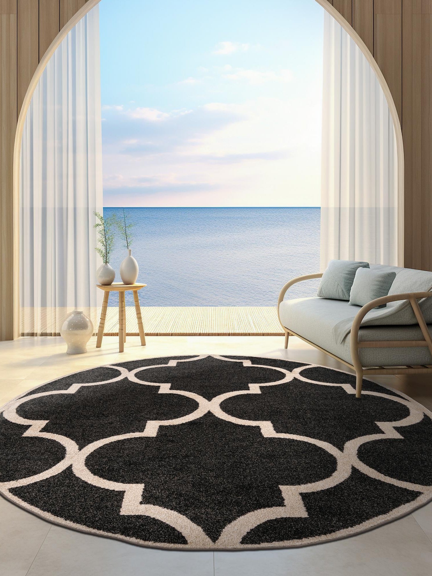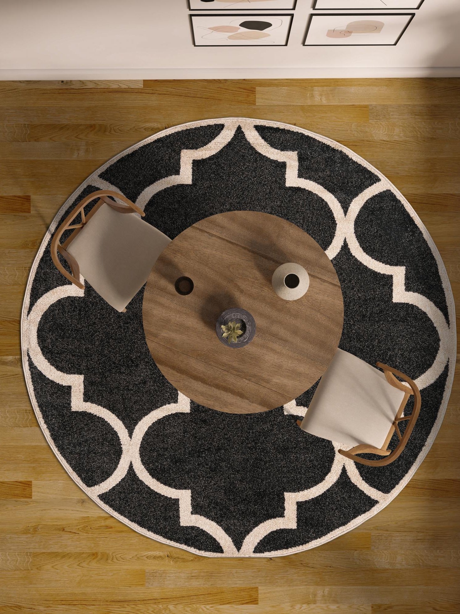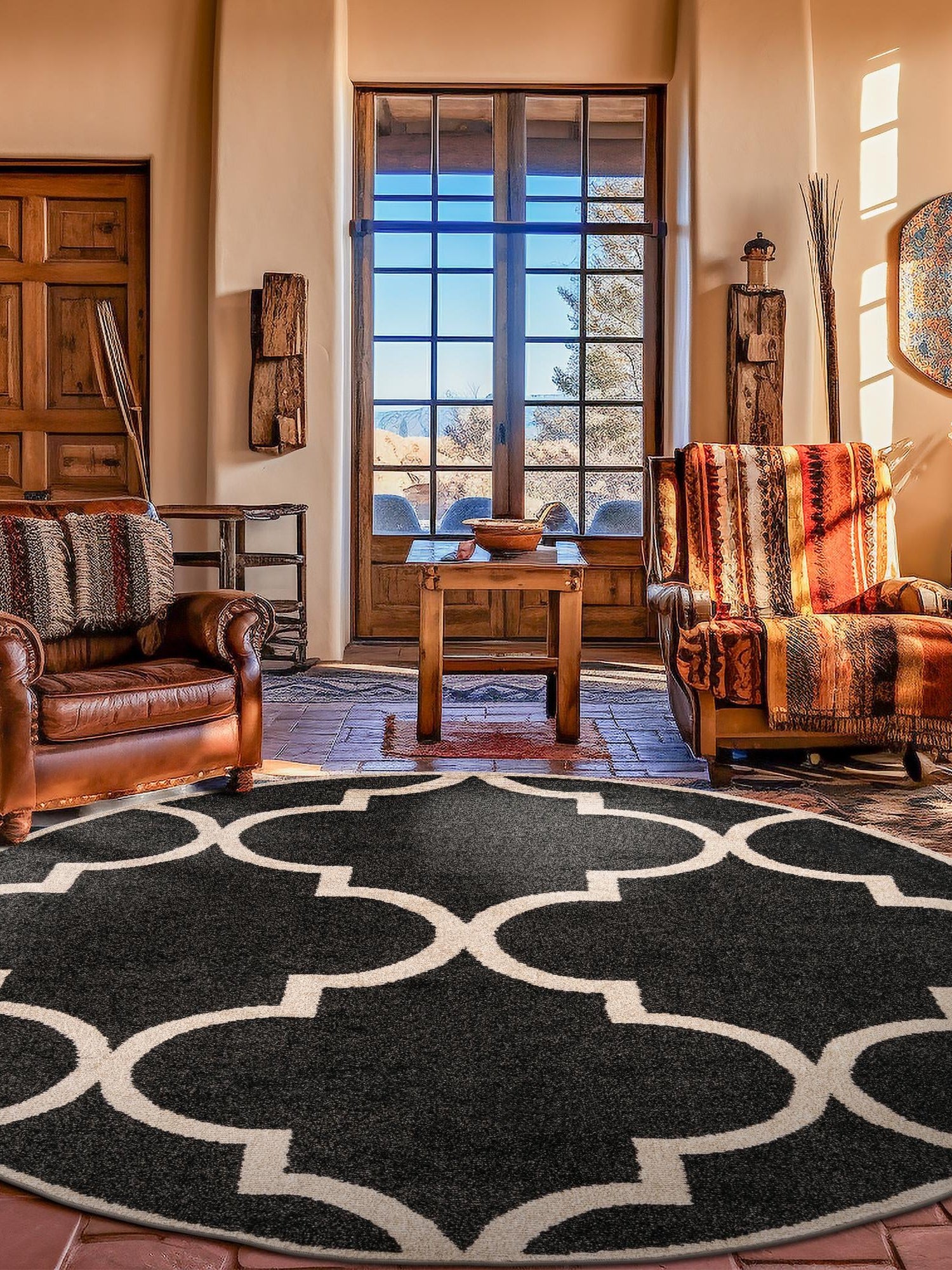 Black and White 3' 3 x 3' 3 Trellis Round Area Rug
