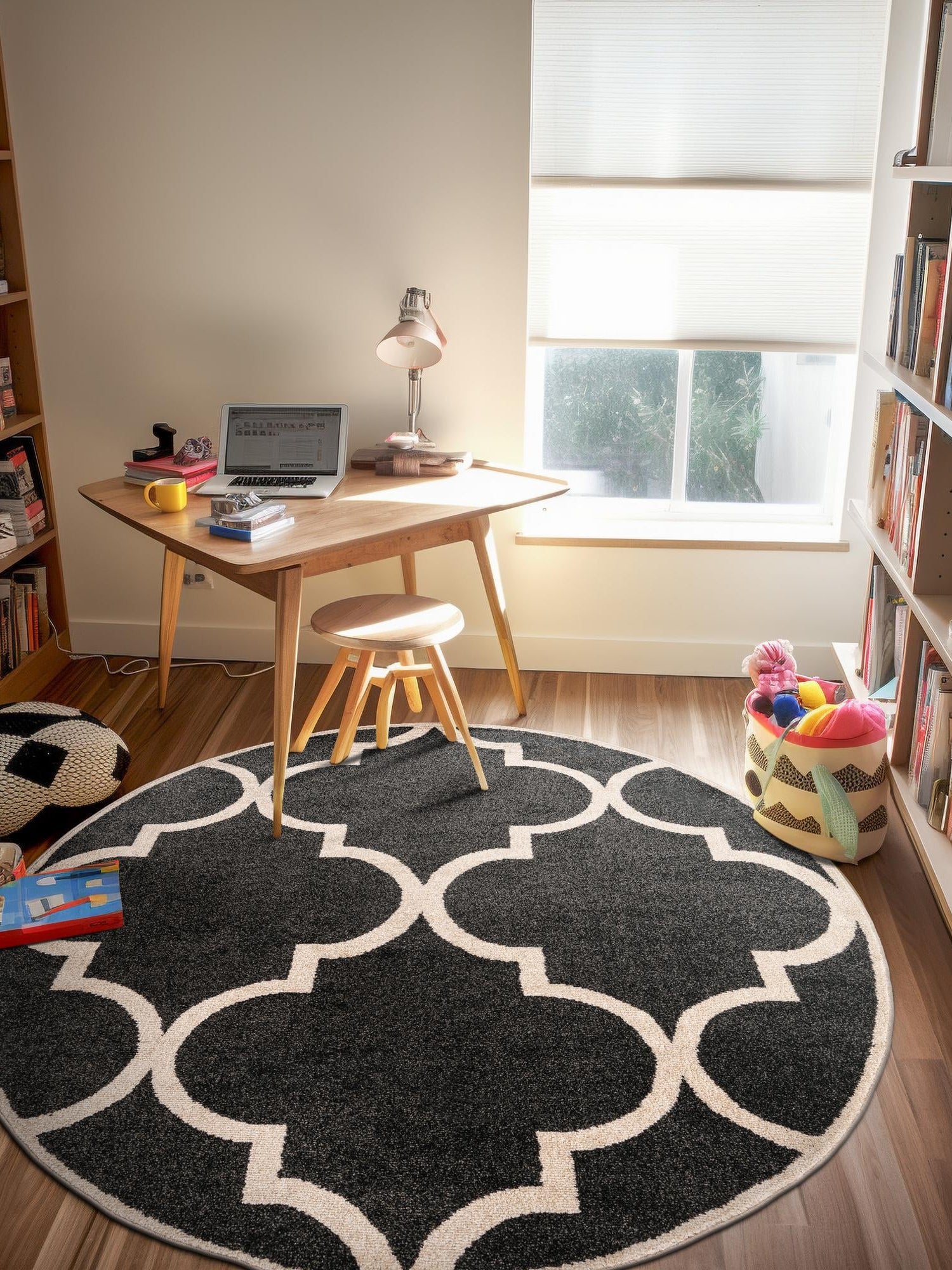 - Versatile Decor Element: The modern design and neutral color palette make this rug a perfect fit for various decor styles, from minimalistic to eclectic. Use it as a focal point in a room or let it blend harmoniously with your existing furnishings. Transform your space into a cozy oasis with this versatile round rug.