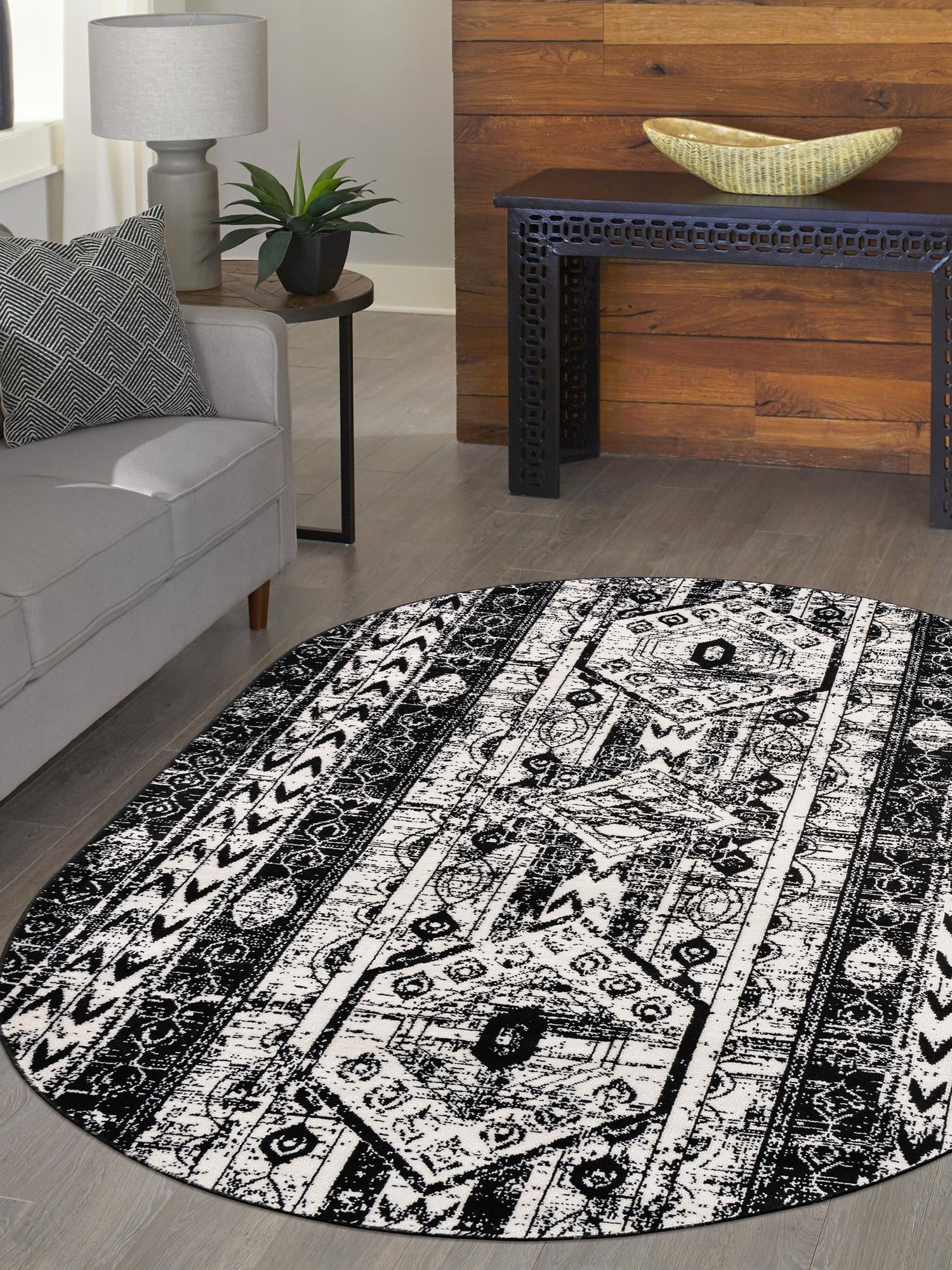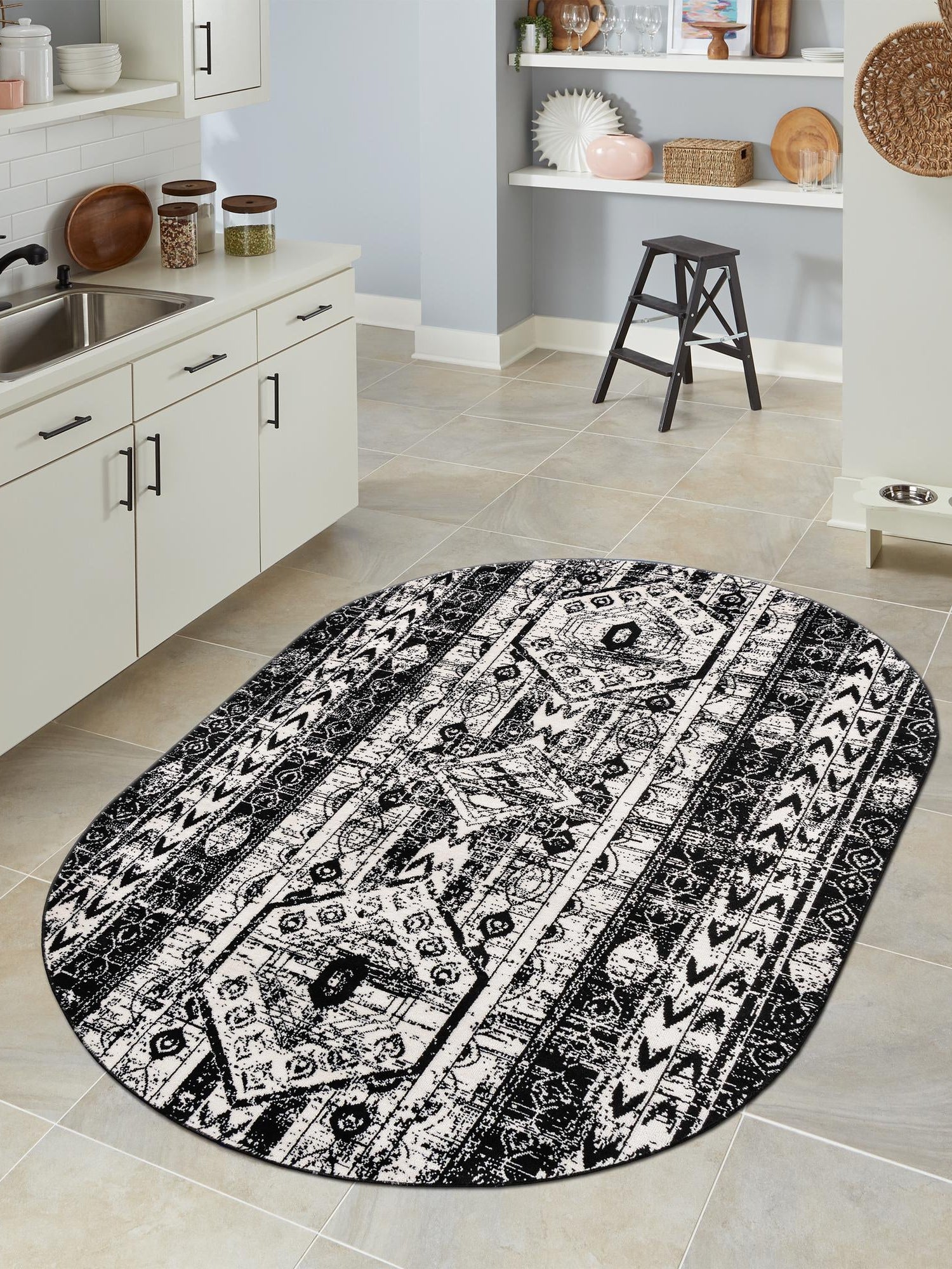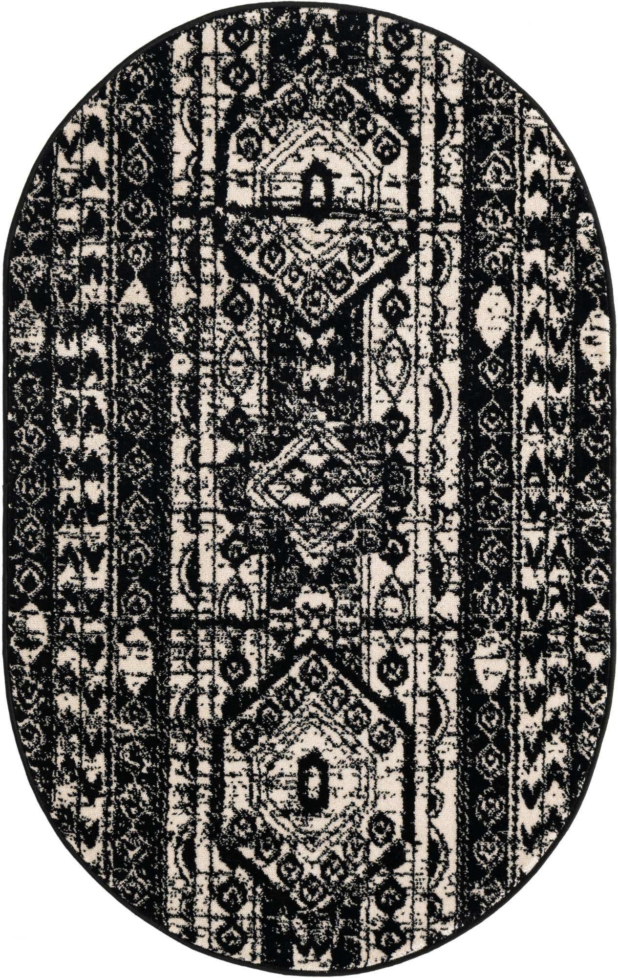 Black and White 3' 1 x 5' 3 Portland Oval Area Rug 85% Polypropylene & 15% Polyester Vintage Distressed Traditional Carpet for Home Decor
