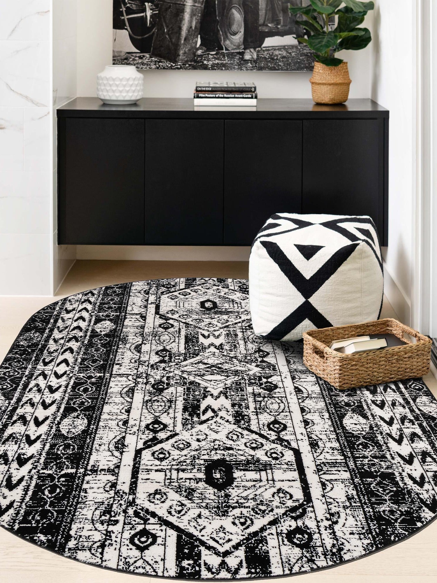 - Stunning Color Palette: The classic black and white color scheme adds a timeless elegance to your space. This rug not only serves as a functional piece but also acts as a striking focal point in any room. Combining simplicity with sophistication, it effortlessly elevates your home’s aesthetic.