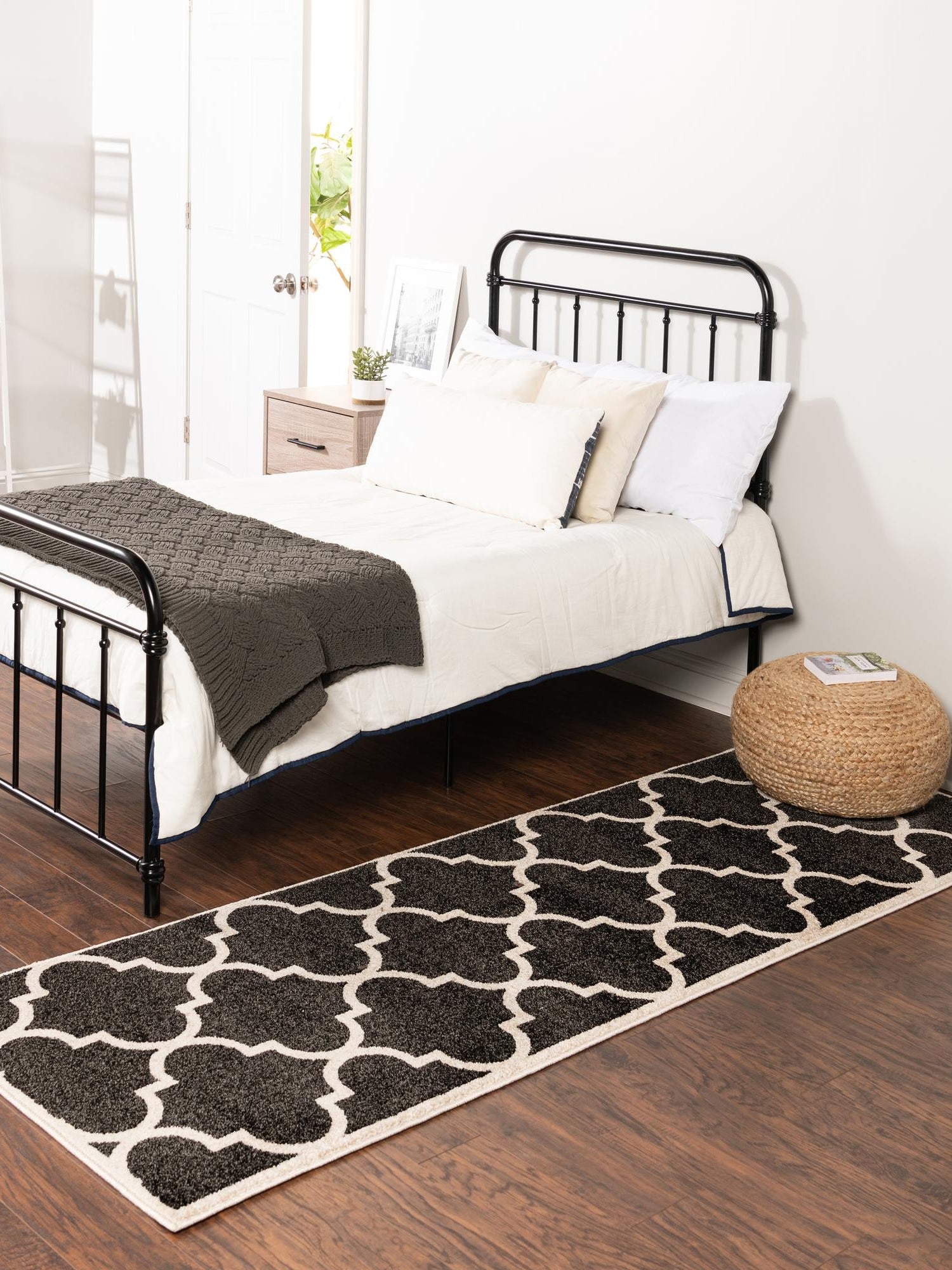 Black and White 2' 7 x 8' Trellis Runner Area Rug