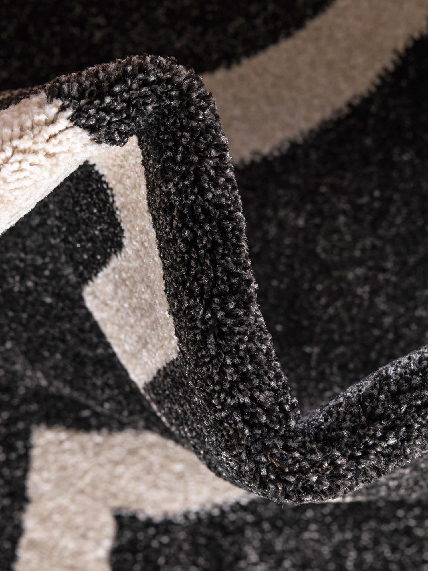 - Striking Black and White Color Scheme: The contrasting black and white colors of this rug make a bold statement in any room. This timeless color palette allows it to blend beautifully with any design style, whether modern or traditional. The geometric pattern adds an element of sophistication, ensuring your space remains stylish and chic.