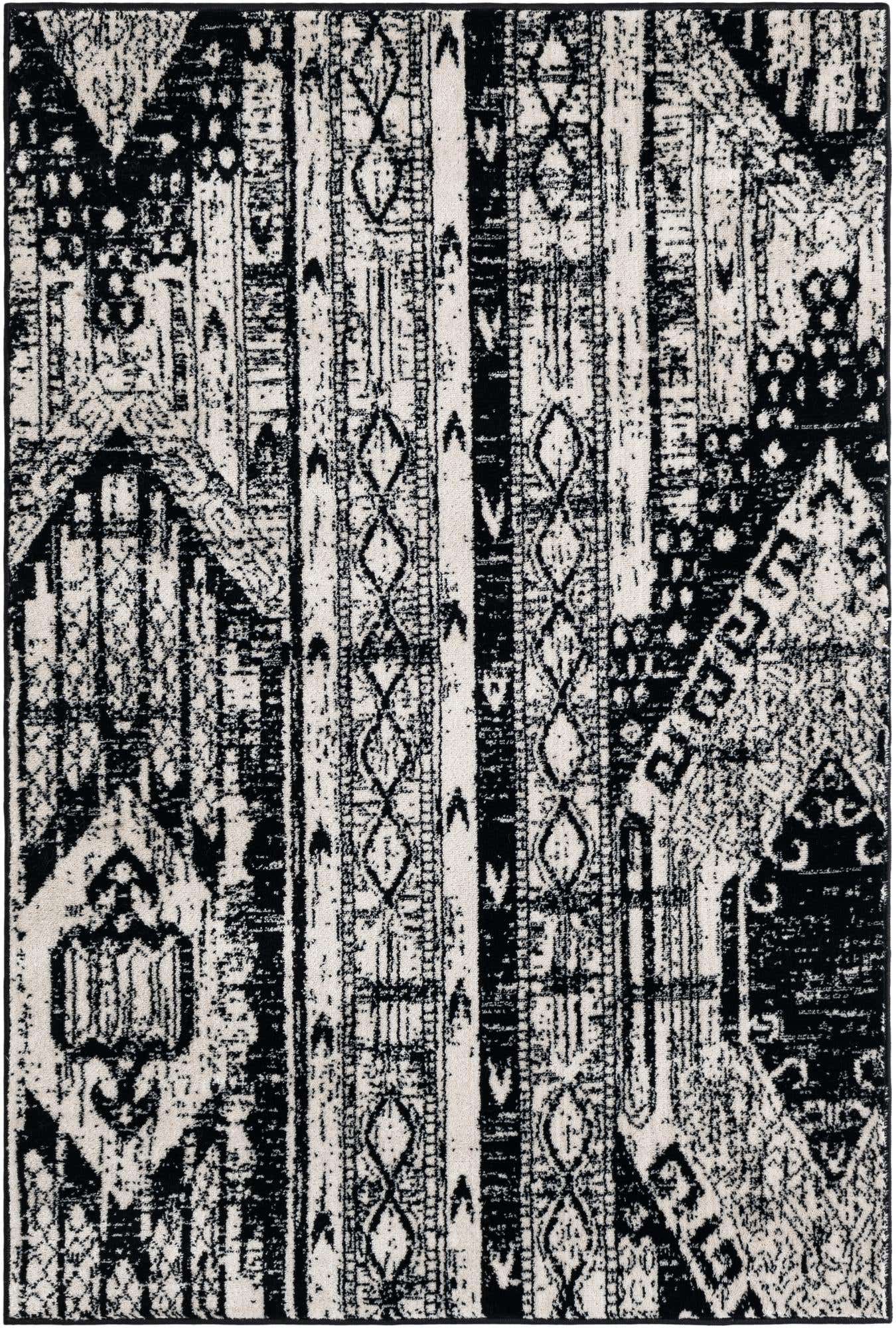 Black and White 4' 1 x 6' 1 Portland Rectangle Area Rug 85% Polypropylene & 15% Polyester Vintage Distressed Traditional Carpet for Home Decor