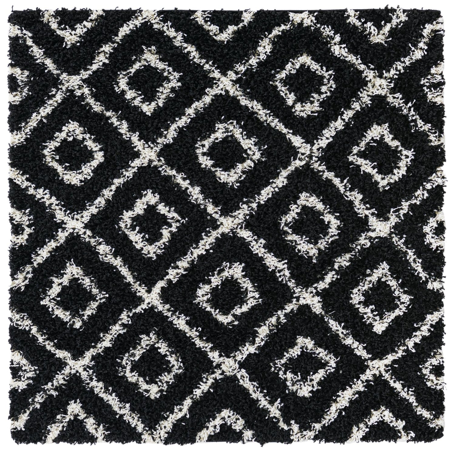 Black and White 4' x 4' Trellis Shag Square Area Rug Thick ...