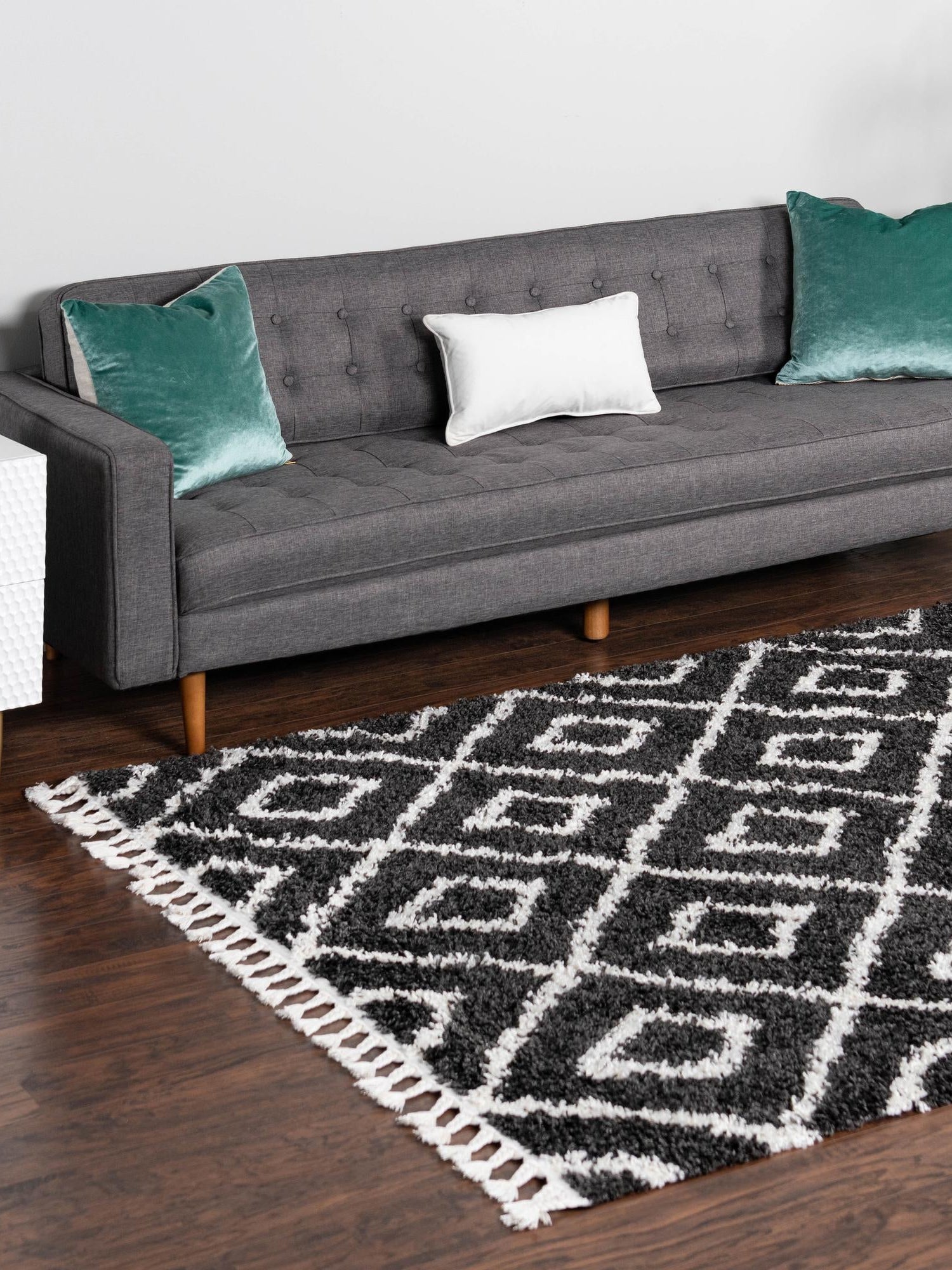 - Stylish Black and White Design: The chic black and white color scheme adds a touch of modern elegance to any room. This rug is not just a functional piece but also a stylish accent that enhances your interior design. It's perfect for those who appreciate minimalist aesthetics or cozy hygge vibes.