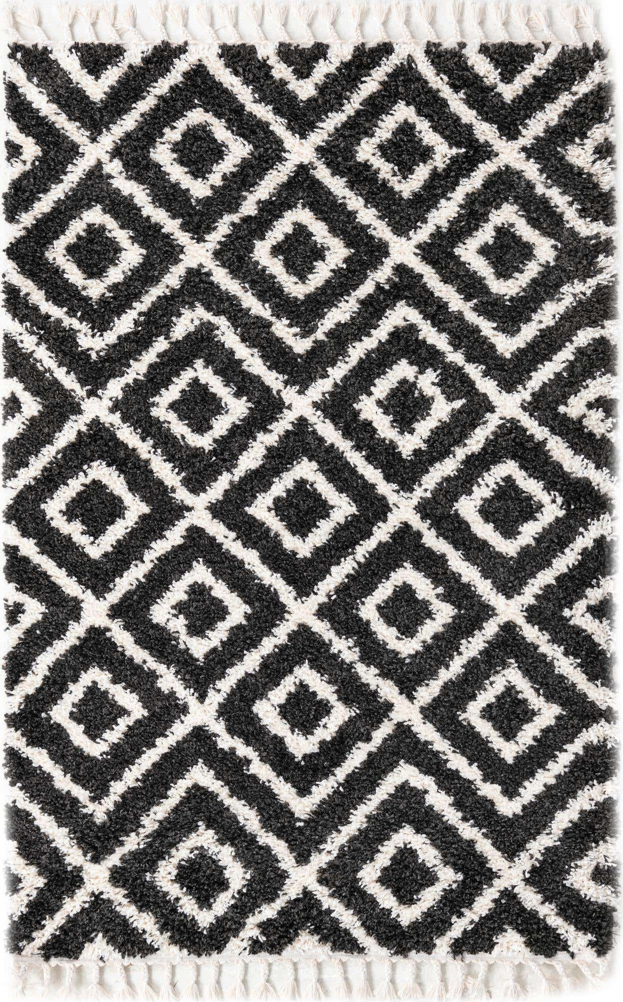 Black and White 4' x 6' Hygge Shag Rectangle Area Rug Thick Soft Touch Fluffy & Plush Shaggy Pile 100% Polypropylene With Jute Backing Modern Carpet