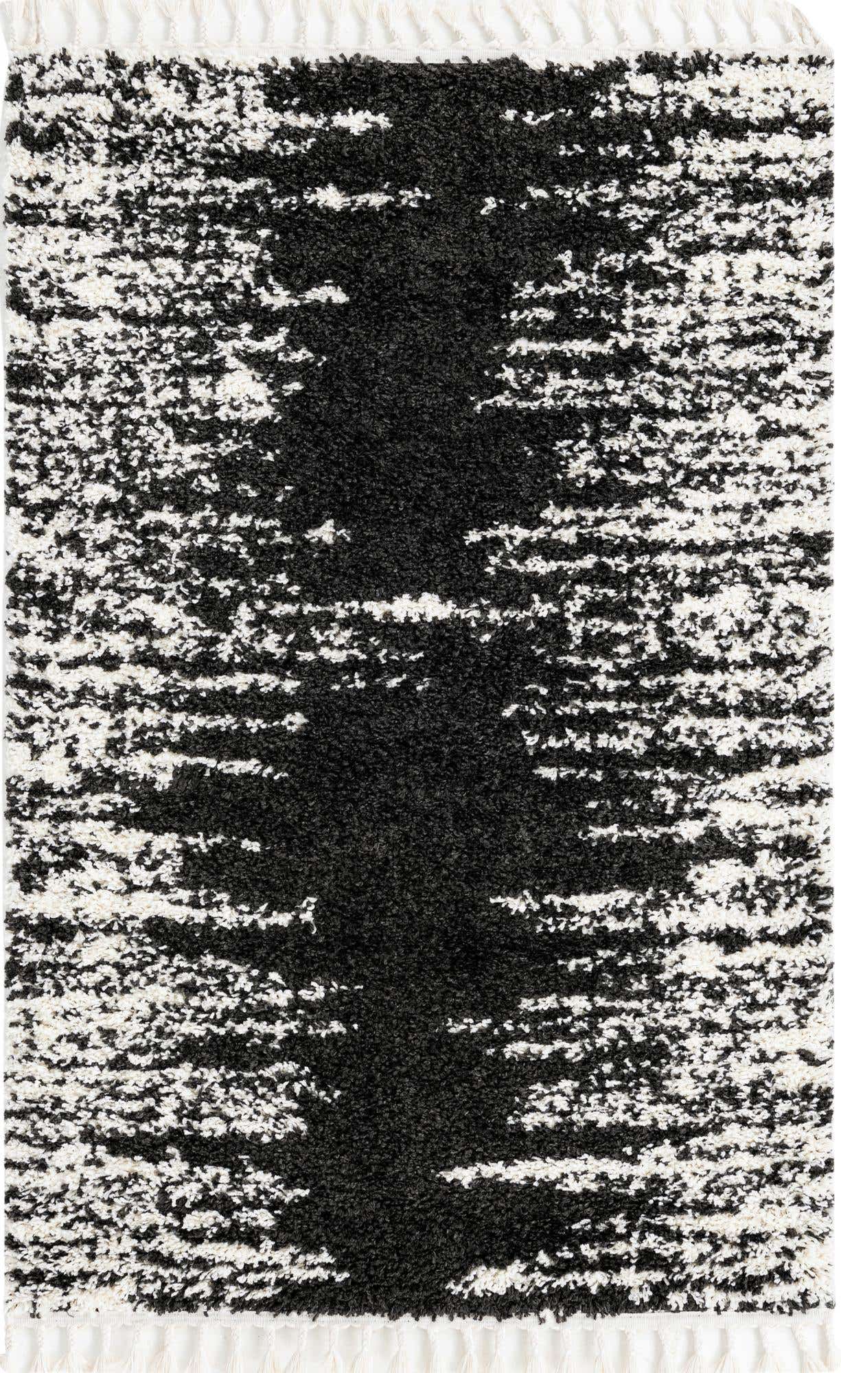 Black and White 4' x 6' Serenity Shag Rectangle Area Rug Th...