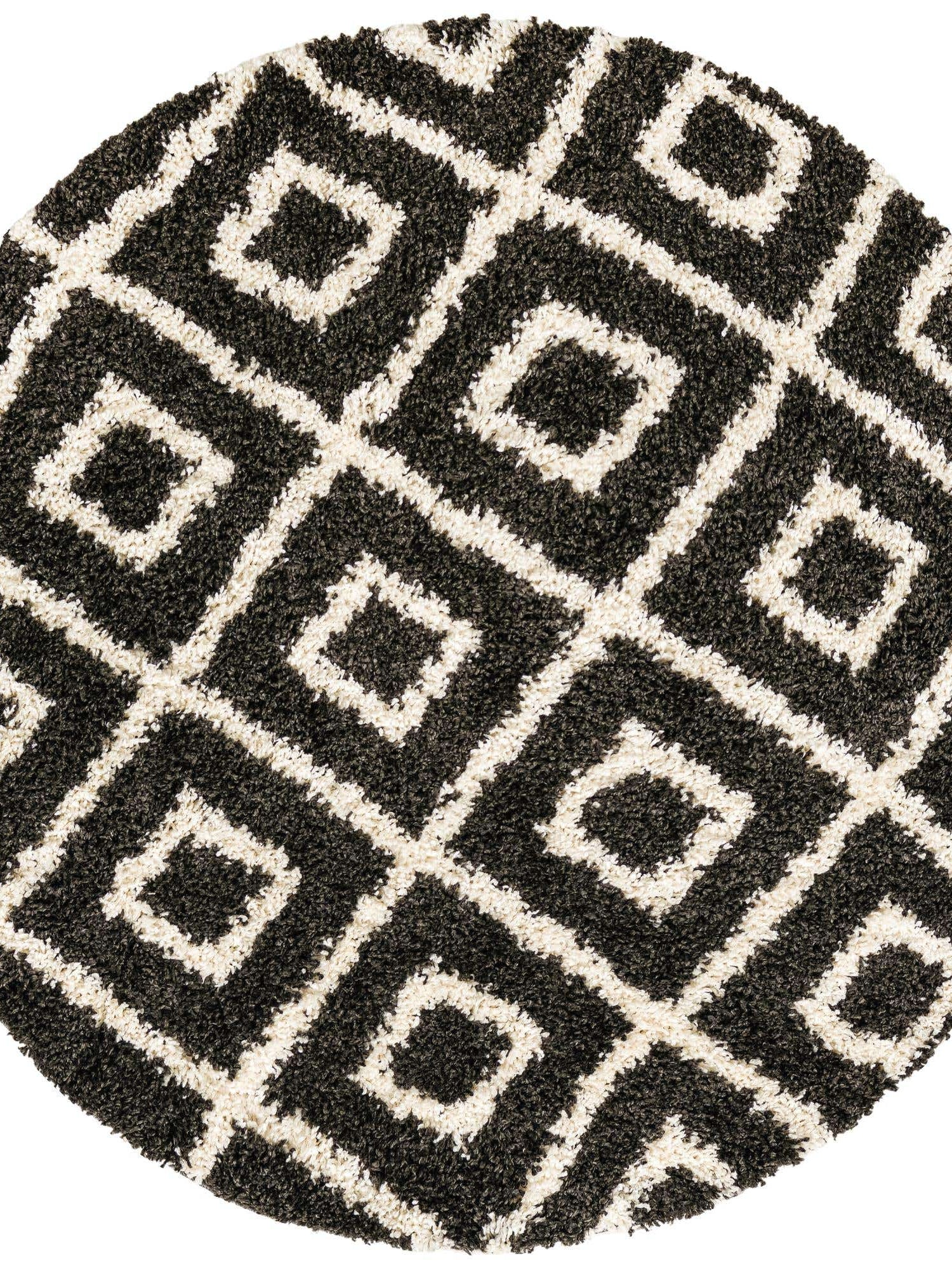 Black and White 5' 3 x 5' 3 Hygge Shag Round Area Rug Thick Soft Touch Fluffy & Plush Shaggy Pile 100% Polypropylene With Jute Backing Modern Carpet