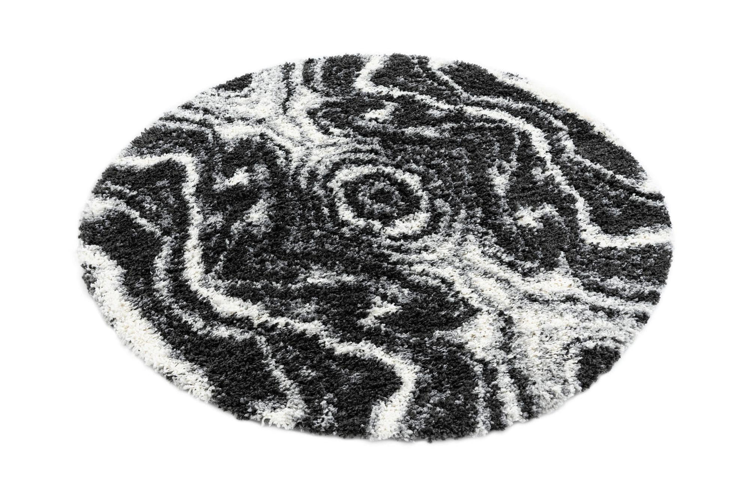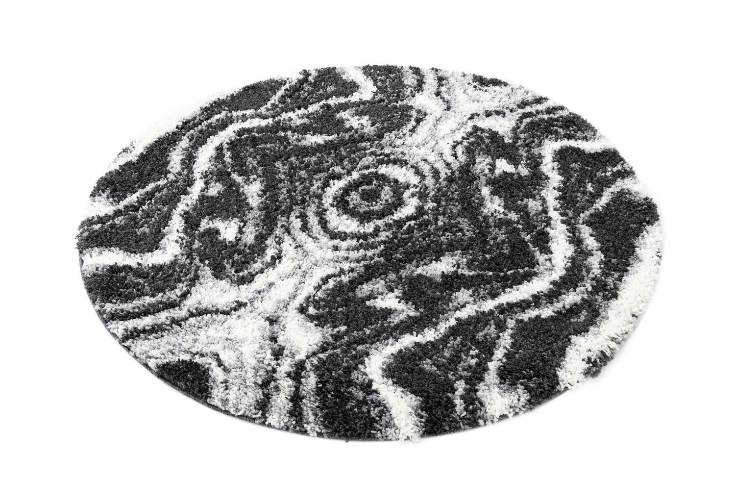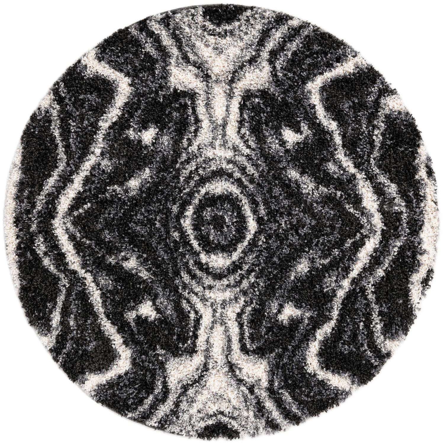 Black and White 5' 3 x 5' 3 Hygge Shag Round Area Rug Thick Soft Touch Fluffy & Plush Shaggy Pile 100% Polypropylene With Jute Backing Modern Carpet