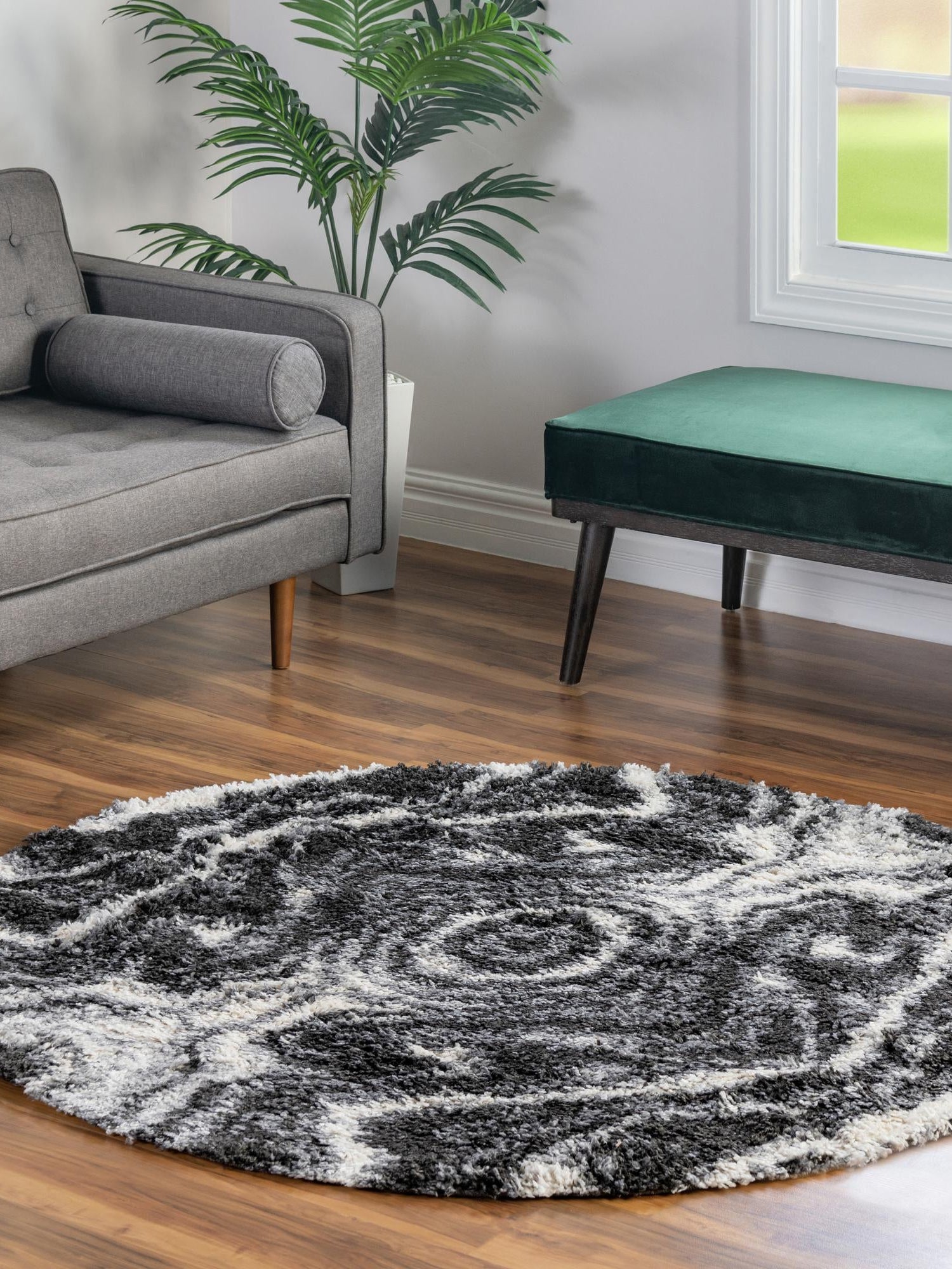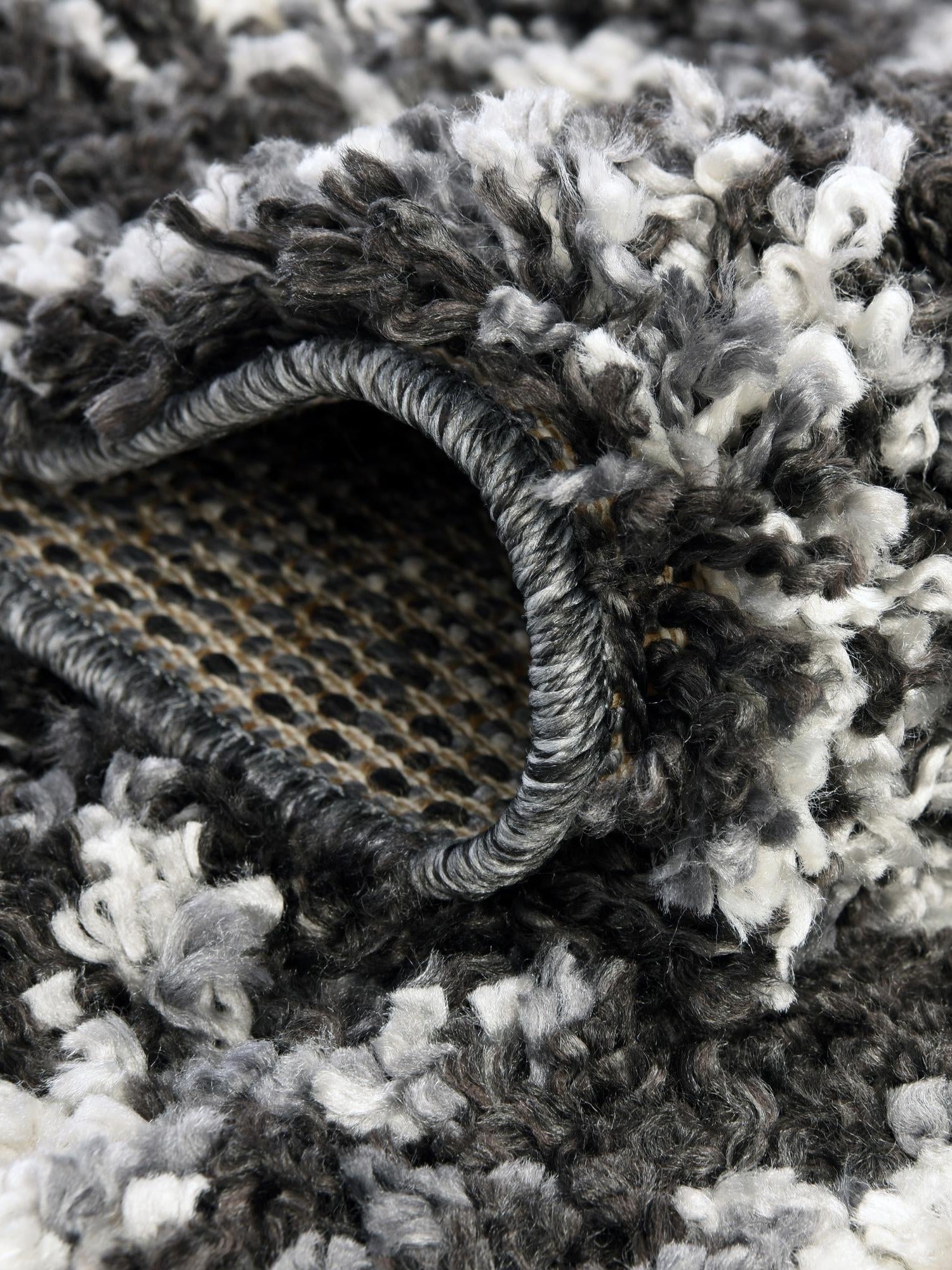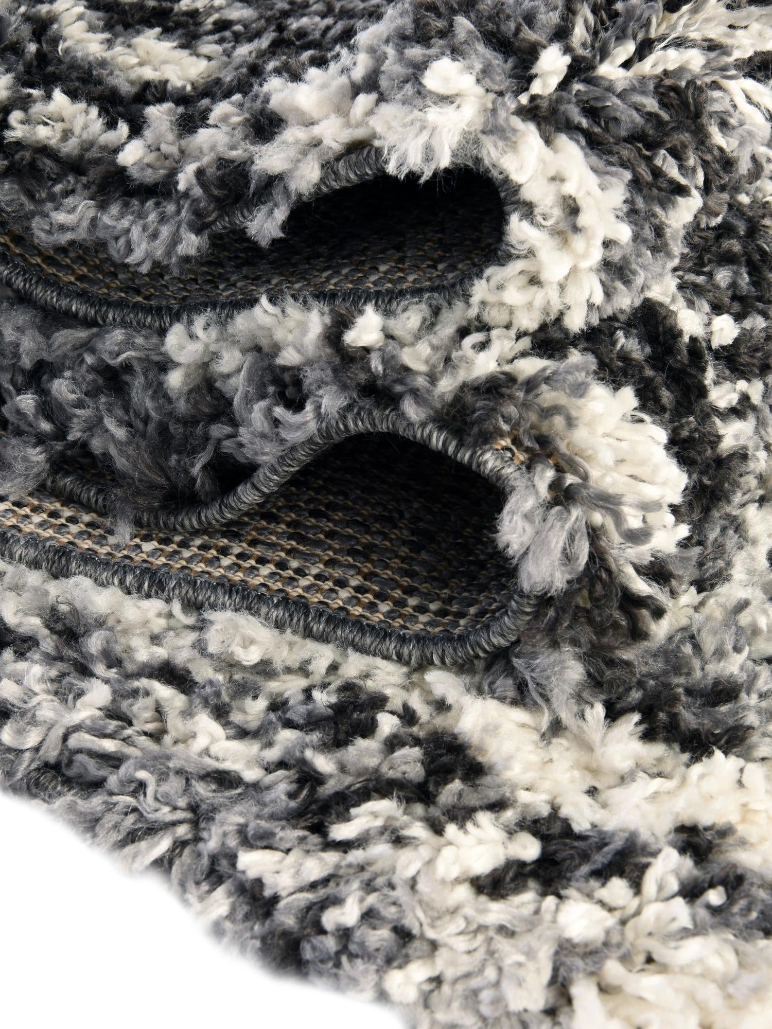 Black and White 5' 3 x 5' 3 Hygge Shag Round Area Rug Thick Soft Touch Fluffy & Plush Shaggy Pile 100% Polypropylene With Jute Backing Modern Carpet