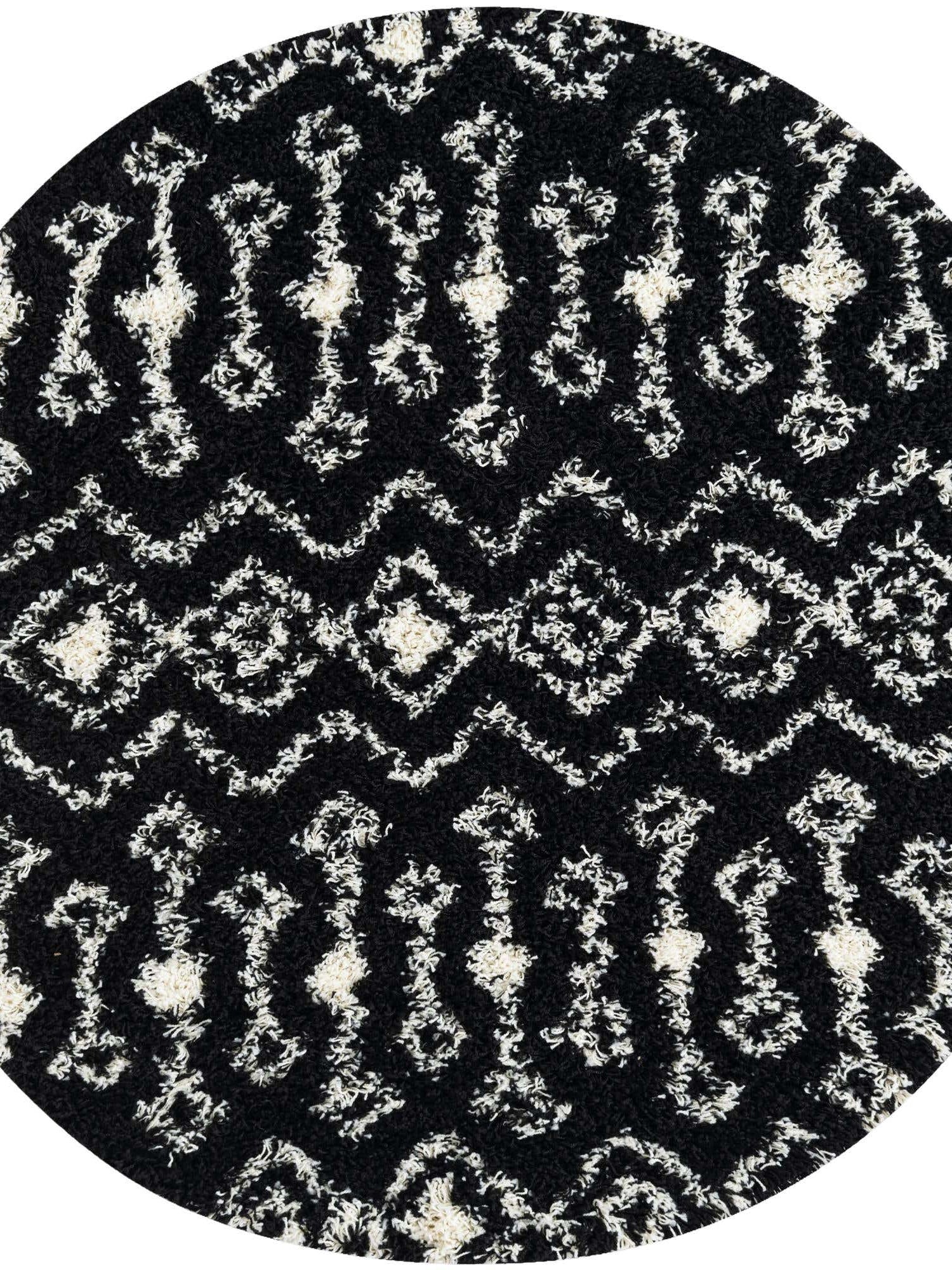 Black and White 5' 3 x 5' 3 Moroccan Trellis Shag Round Area Rug Thick Soft Touch Fluffy & Plush Shaggy Pile