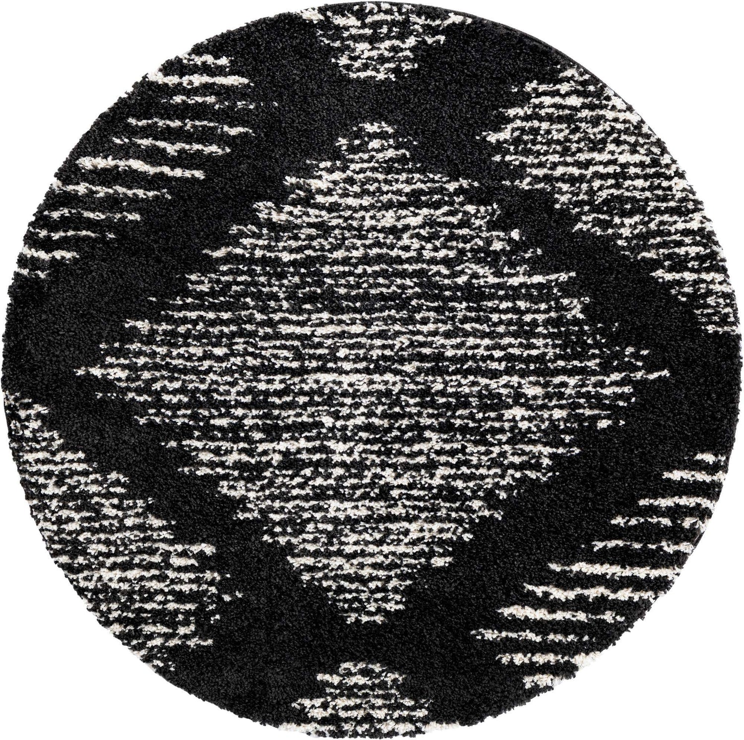 Black and White 5' 3 x 5' 3 Serenity Shag Round Area Rug Th...