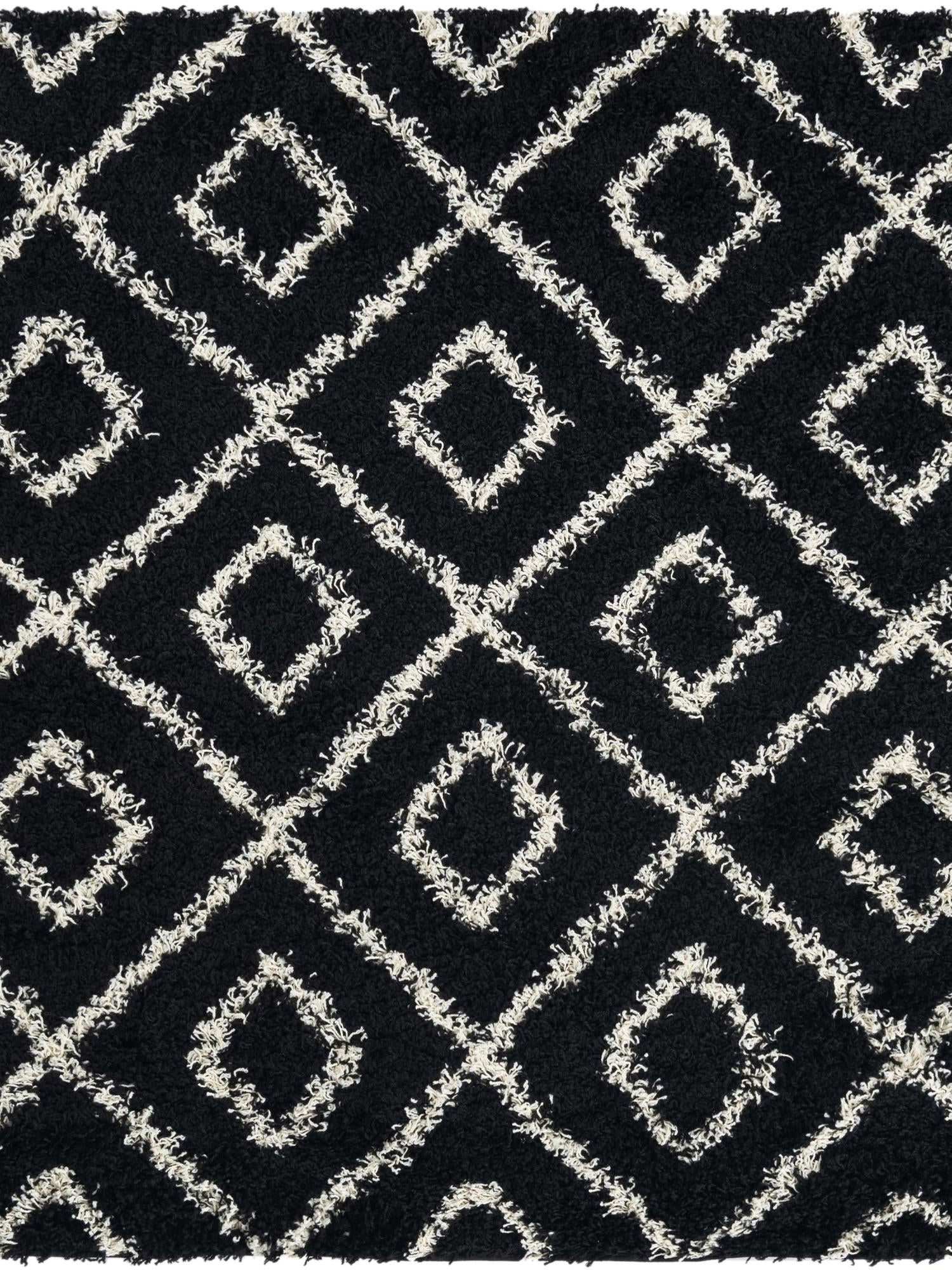 Black and White 5' 3 x 5' 3 Trellis Shag Square Area Rug Thick Soft Touch Fluffy & Plush Shaggy Pile