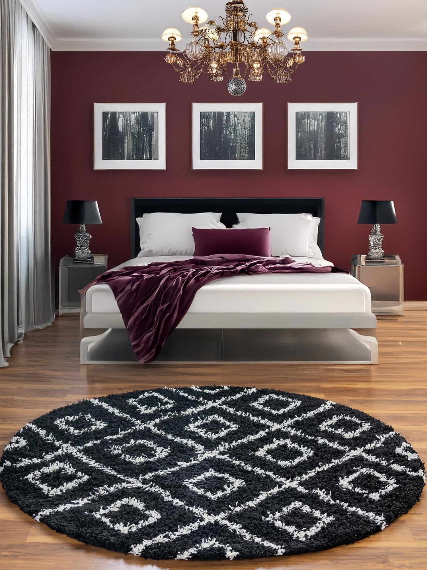Black and White 5' 3 x 5' 3 Trellis Shag Round Area Rug Thick Soft Touch Fluffy & Plush Shaggy Pile