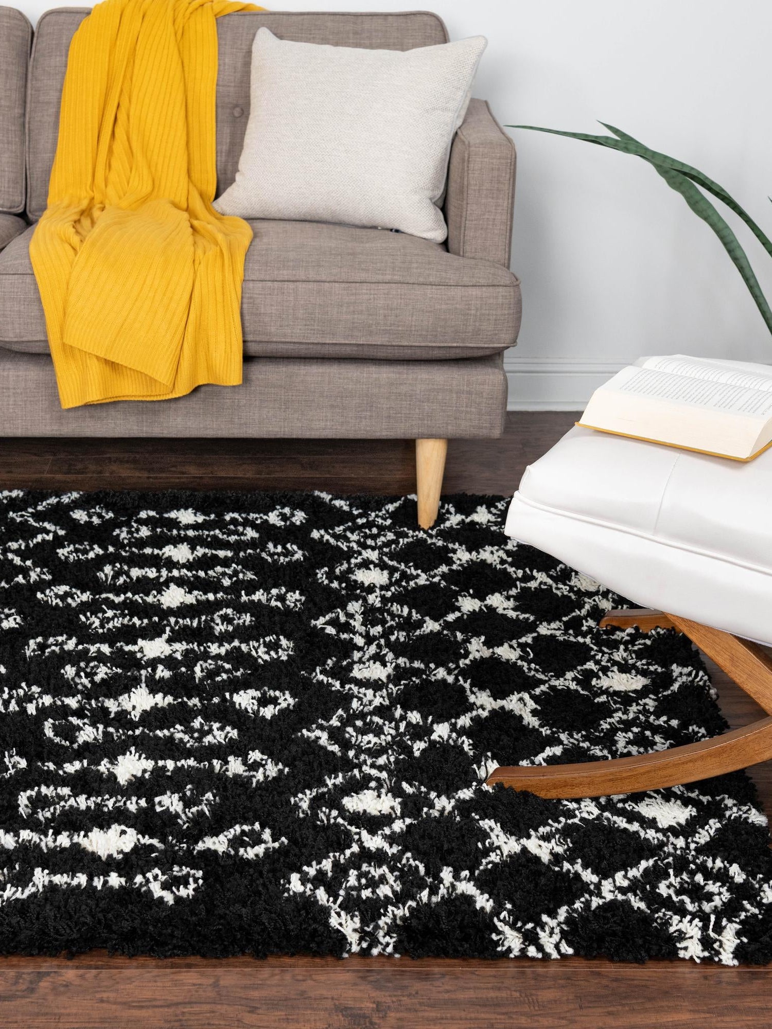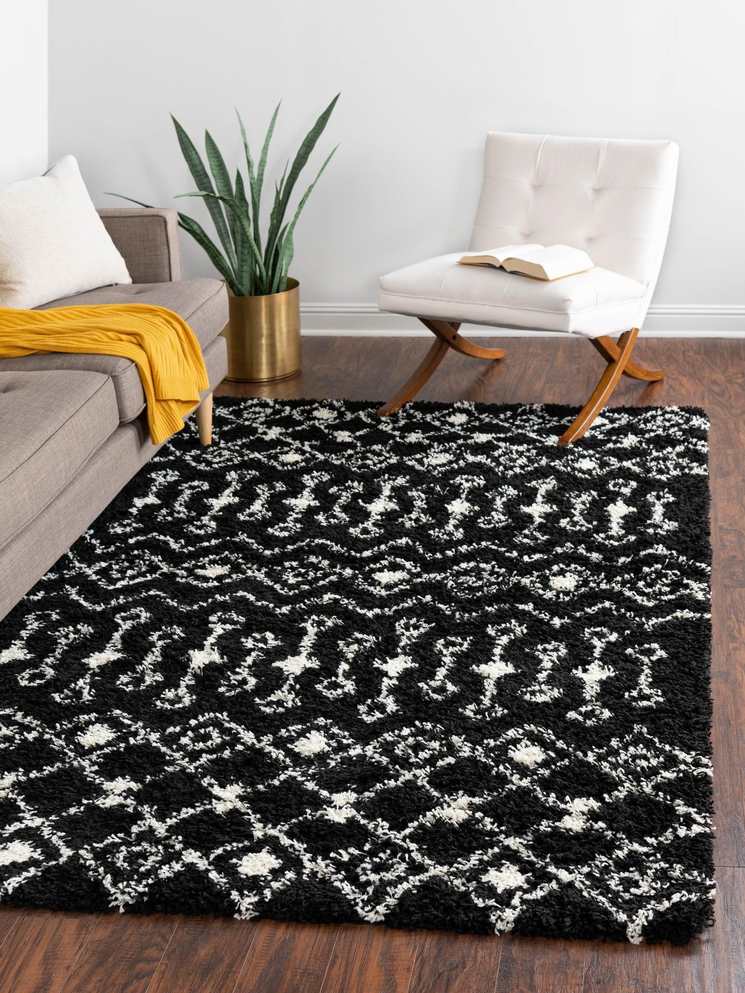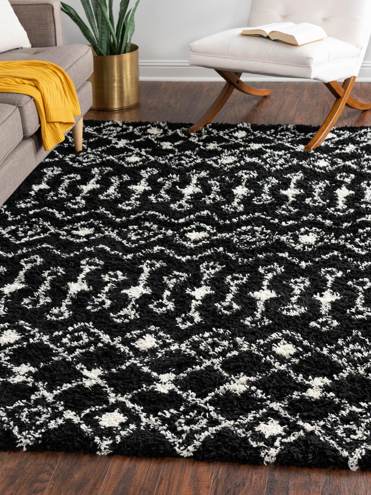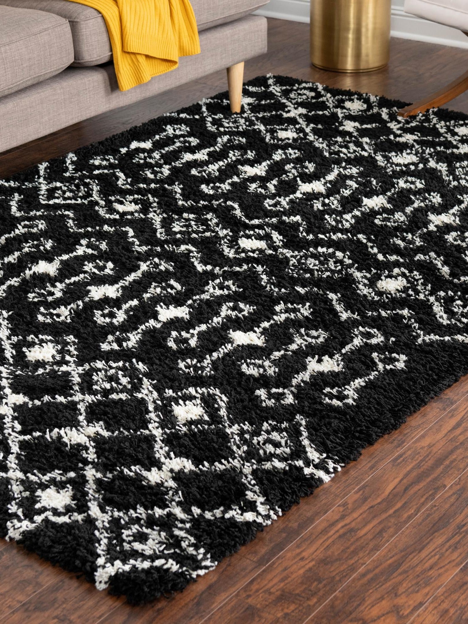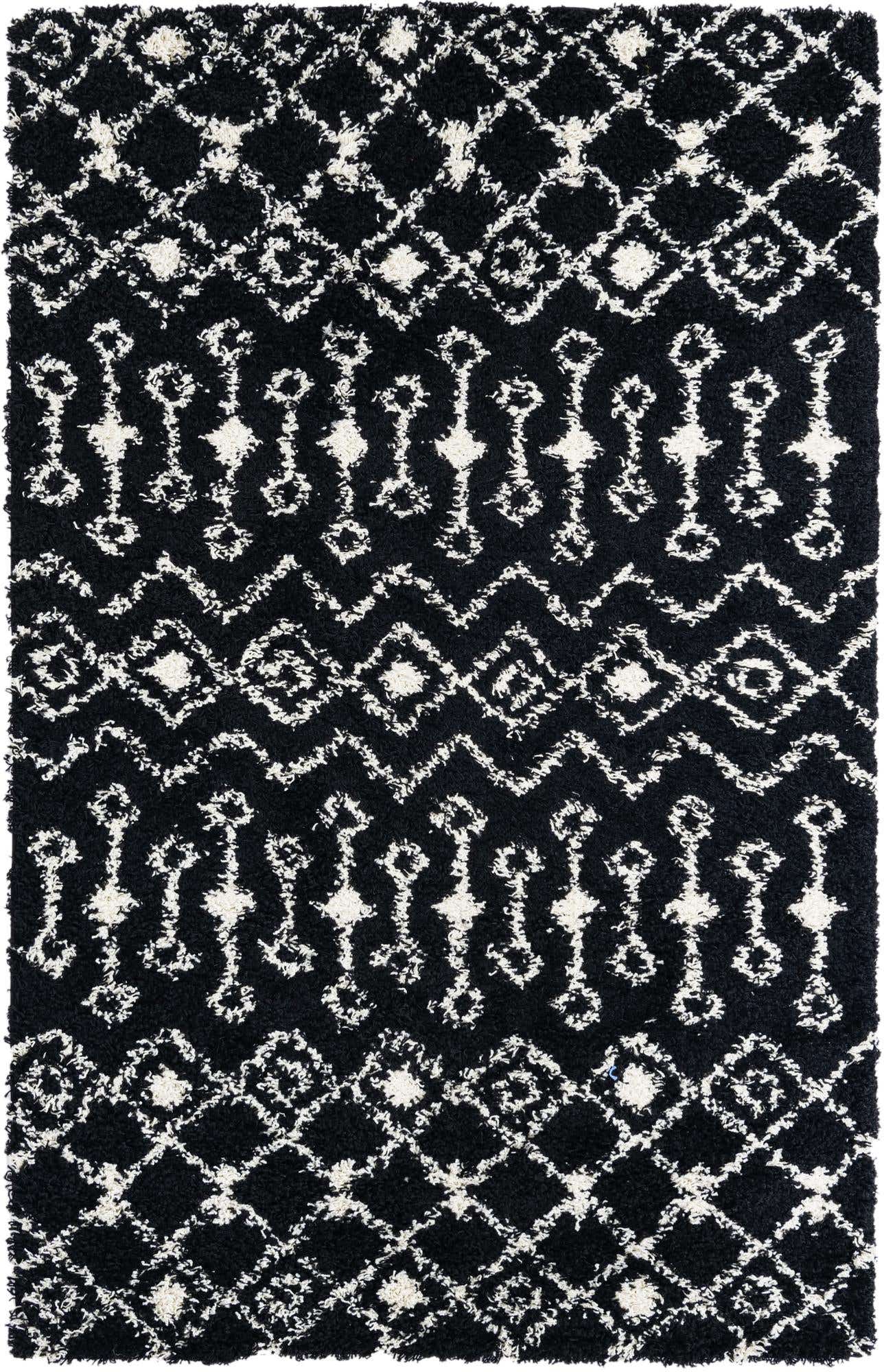 Black and White 5' 3 x 8' Moroccan Trellis Shag Rectangle Area Rug Thick Soft Touch Fluffy & Plush Shaggy Pile