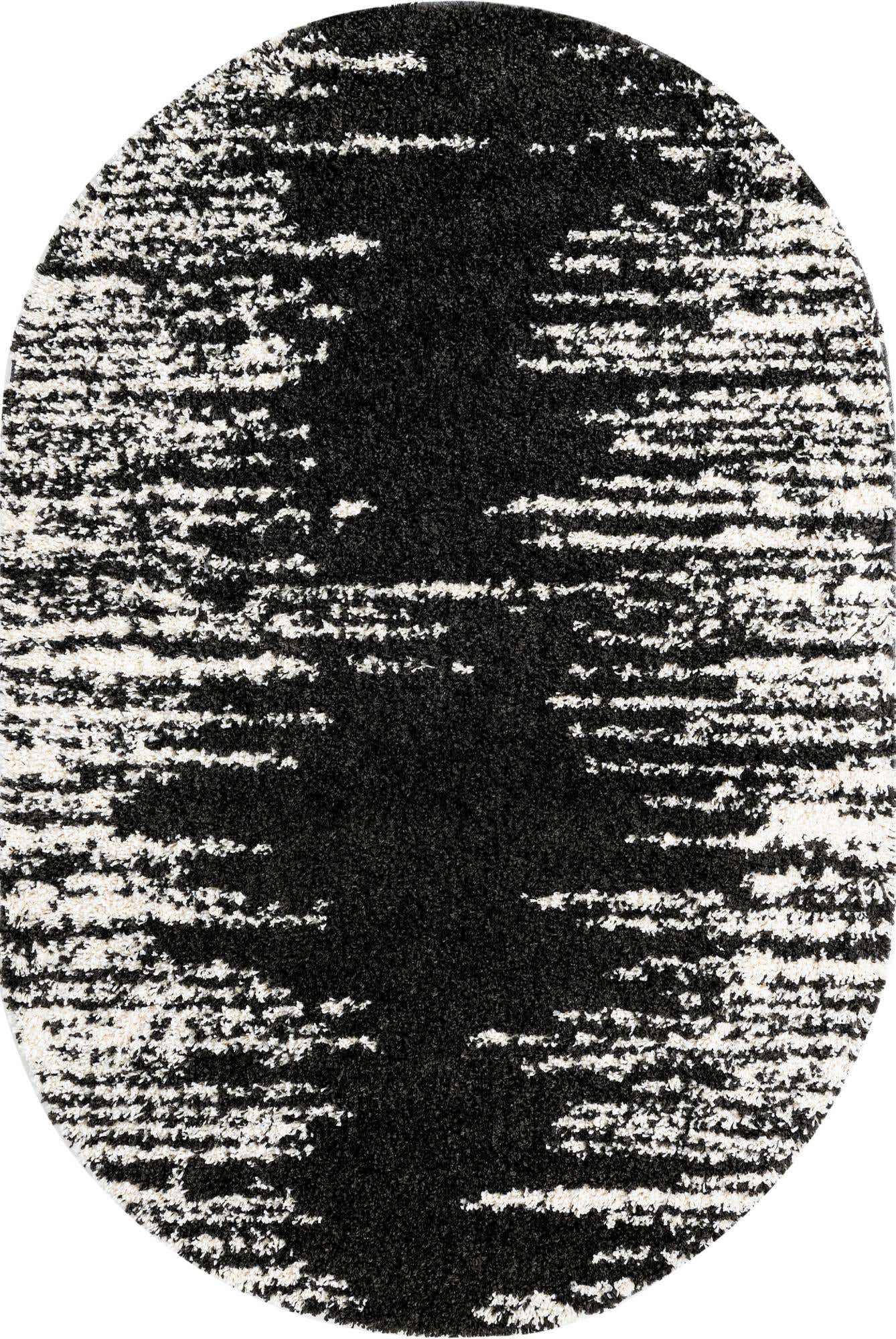 Black and White 5' 3 x 8' Serenity Shag Oval Area Rug Thick Soft Touch Fluffy & Plush Shaggy Pile