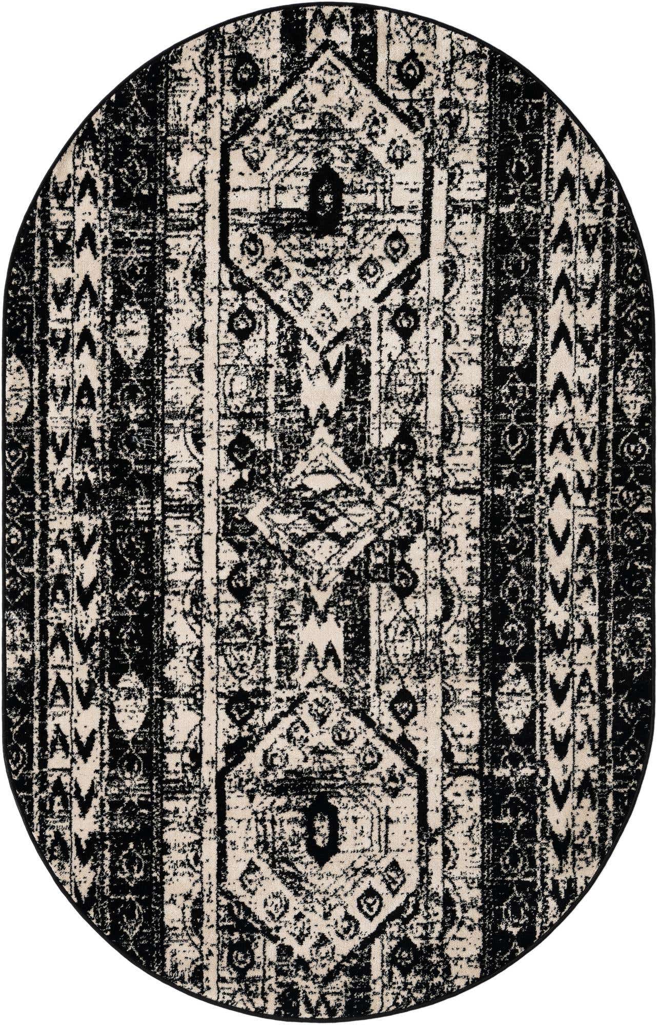 Black and White 5' 3 x 8' Portland Oval Area Rug 85% Polypropylene & 15% Polyester Vintage Distressed Traditional Carpet for Home Decor