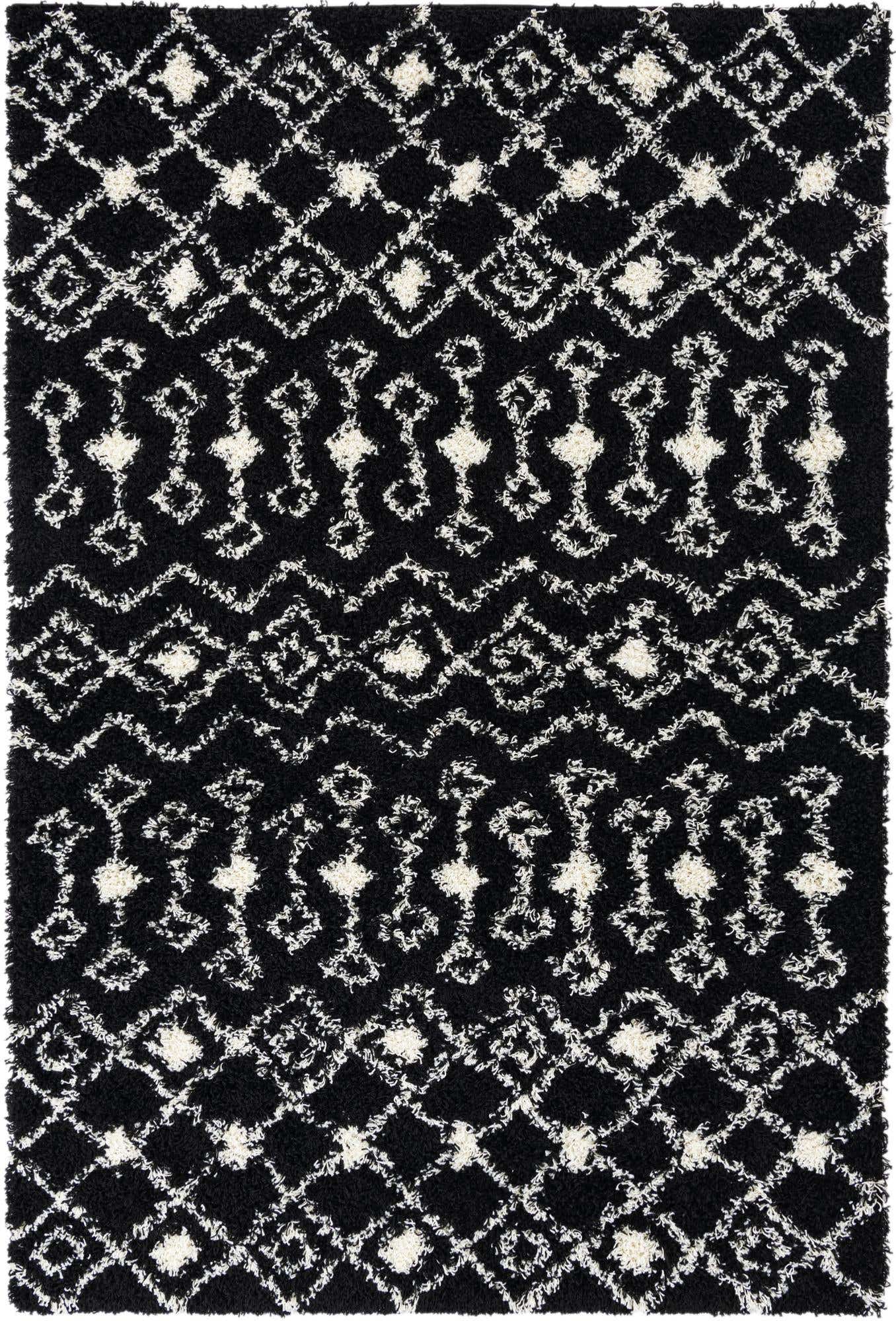 Black and White 6' 1 x 9' Moroccan Trellis Shag Rectangle A...