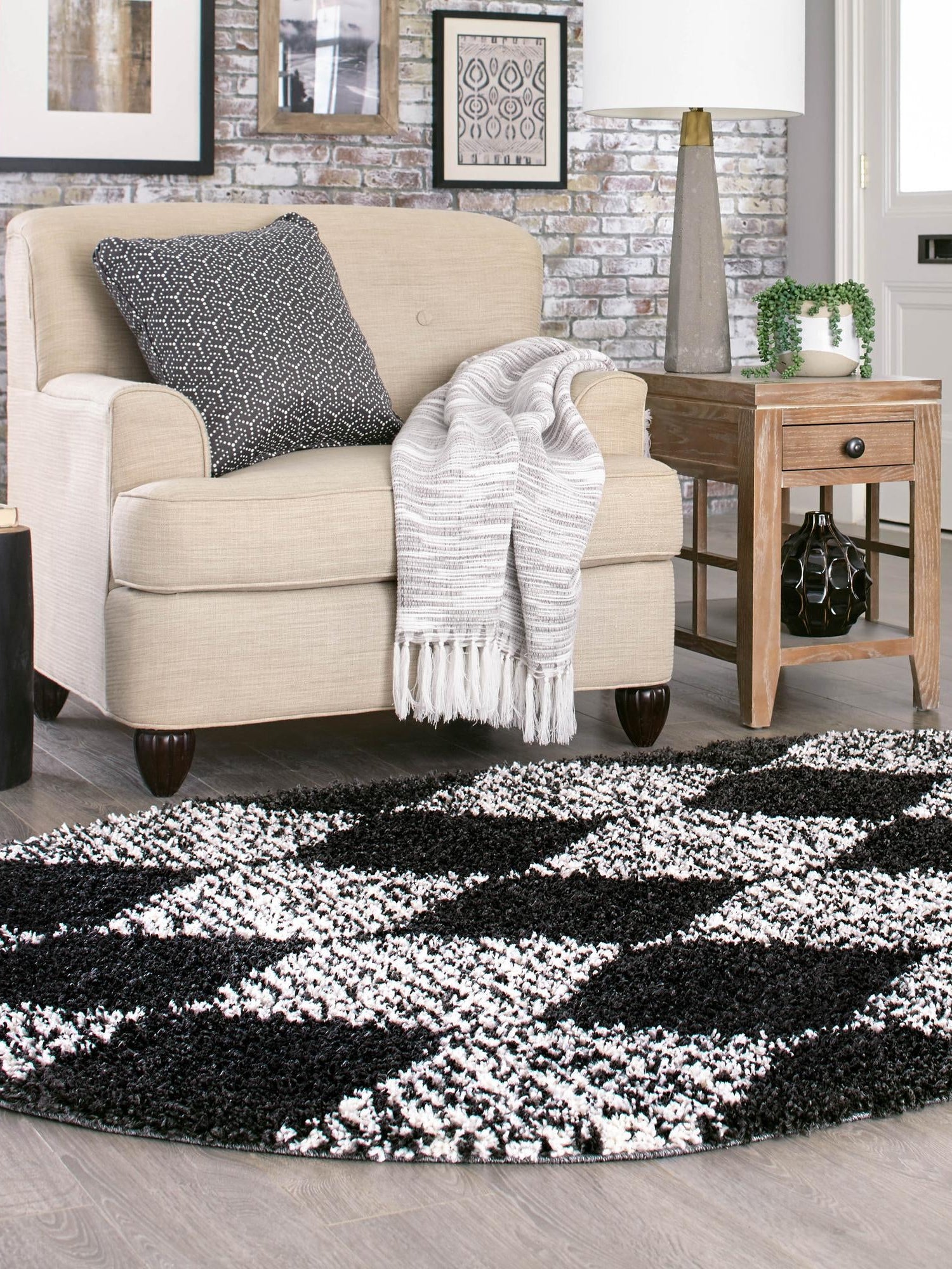 Black and White 7' 10 x 10' Serenity Shag Oval Area Rug Thi...