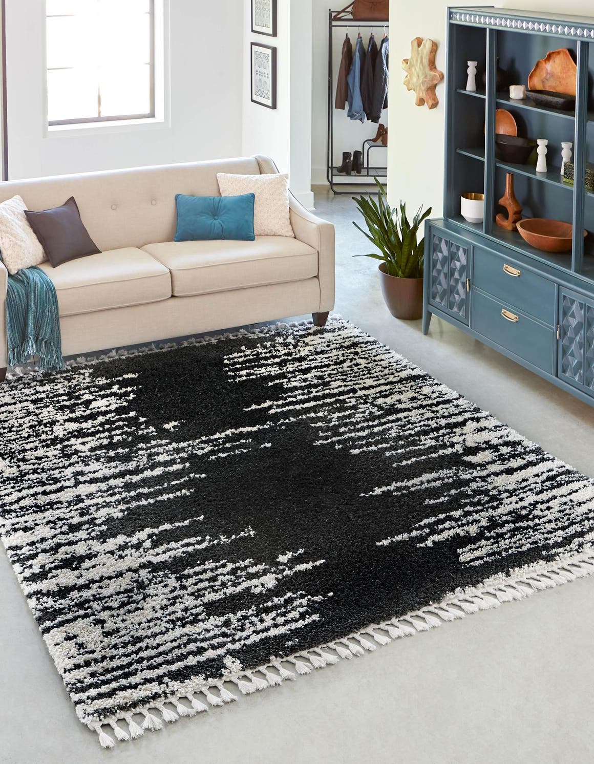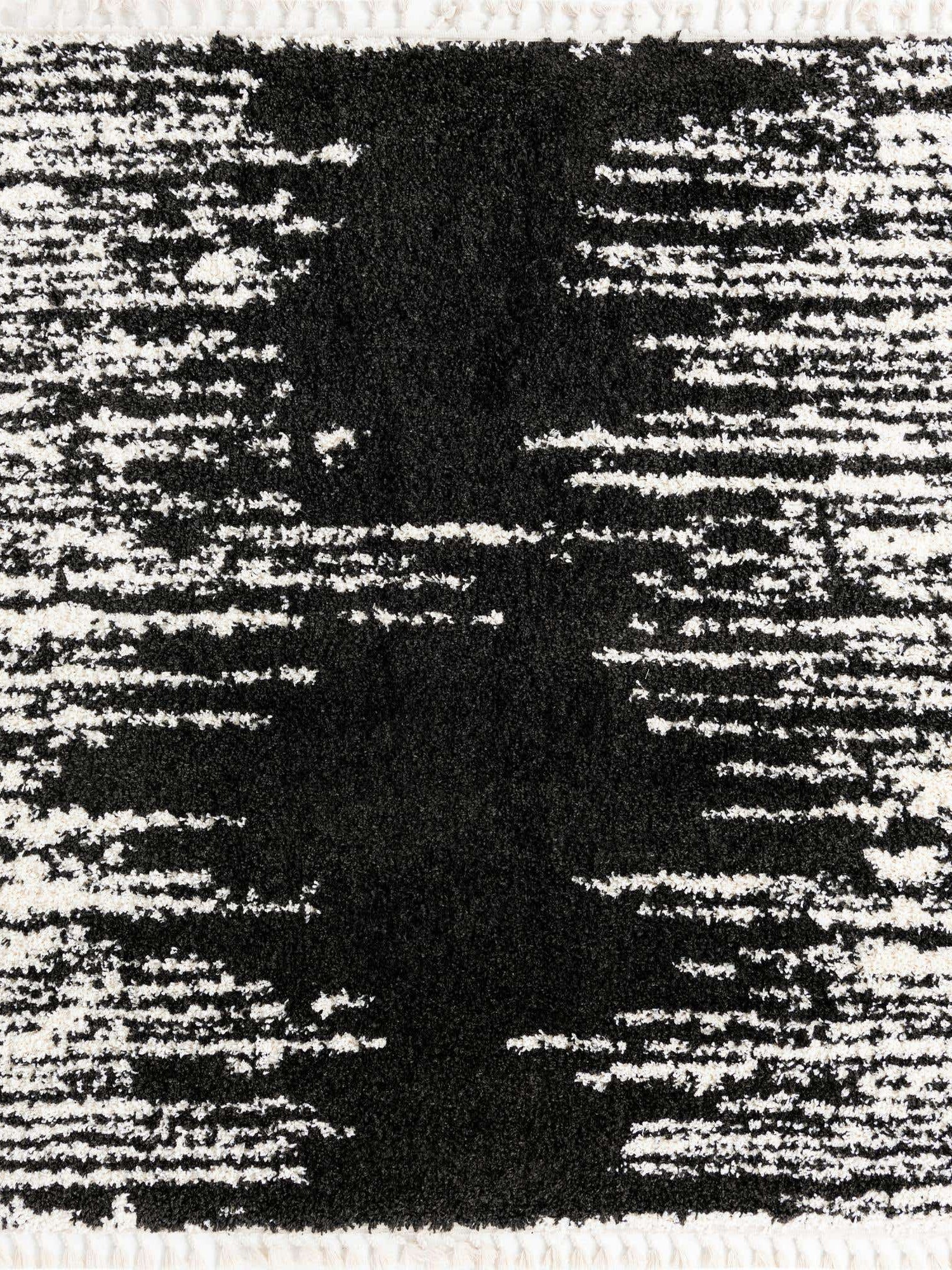 - Chic Color Scheme: Featuring a striking black and white color palette, this rug adds a modern touch to any decor style. The geometric design enhances visual interest while remaining timeless and sophisticated. This classic color combination effortlessly complements existing furnishings and accessories.