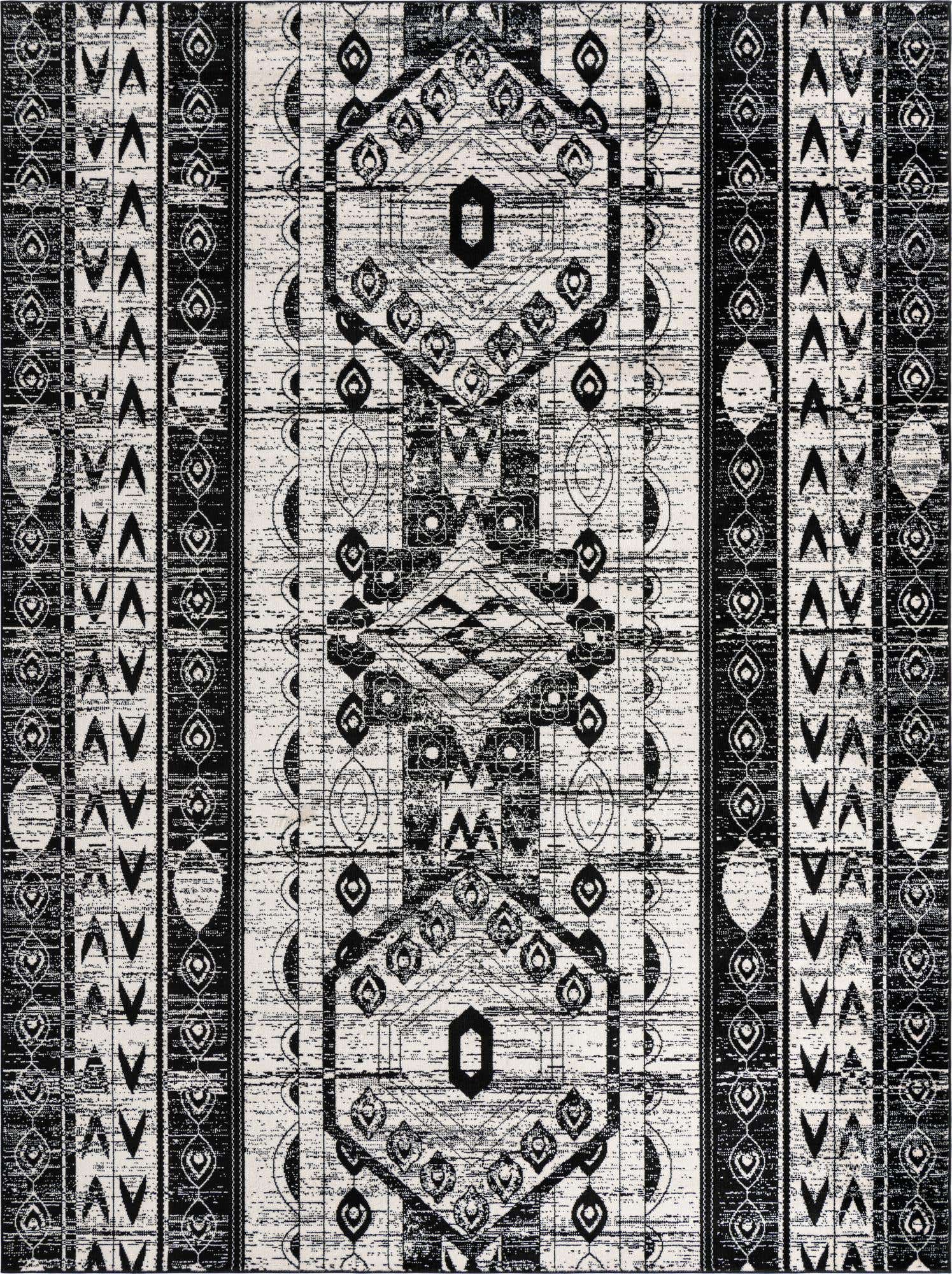Black and White 9' x 12' Portland Rectangle Area Rug 85% Polypropylene & 15% Polyester Vintage Distressed Traditional Carpet for Home Decor