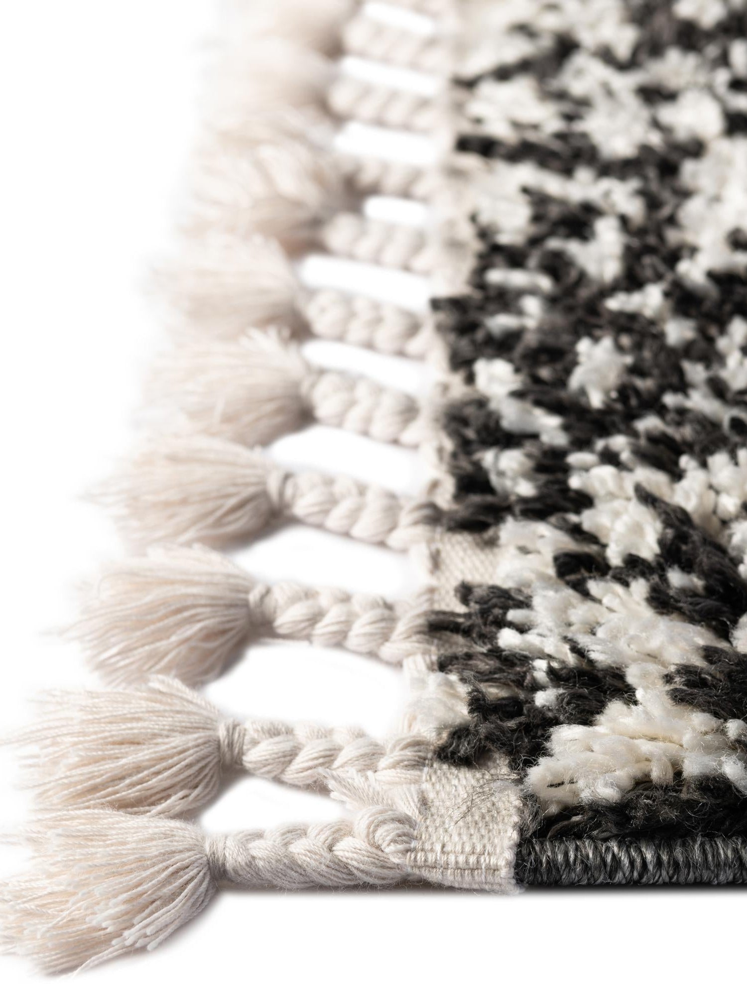- Stylish Design: Featuring a striking black and white color palette, this rug effortlessly blends modern chic with geometric patterns. The bold contrast not only enhances the visual appeal but also creates a dynamic atmosphere in any setting. It’s a versatile addition to various interior styles, from contemporary to minimalist.