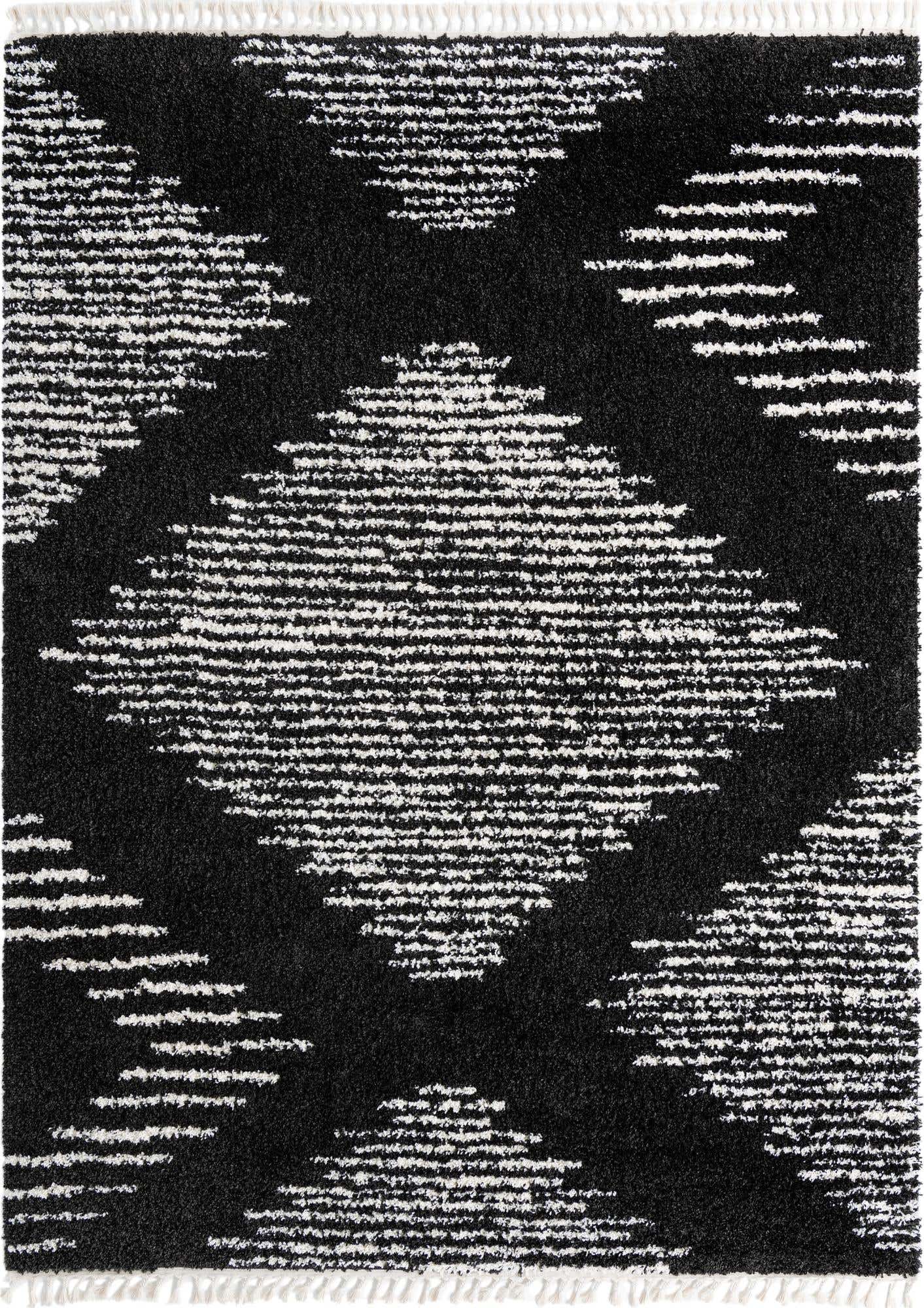 Black and White 9' x 12' Serenity Shag Rectangle Area Rug T...