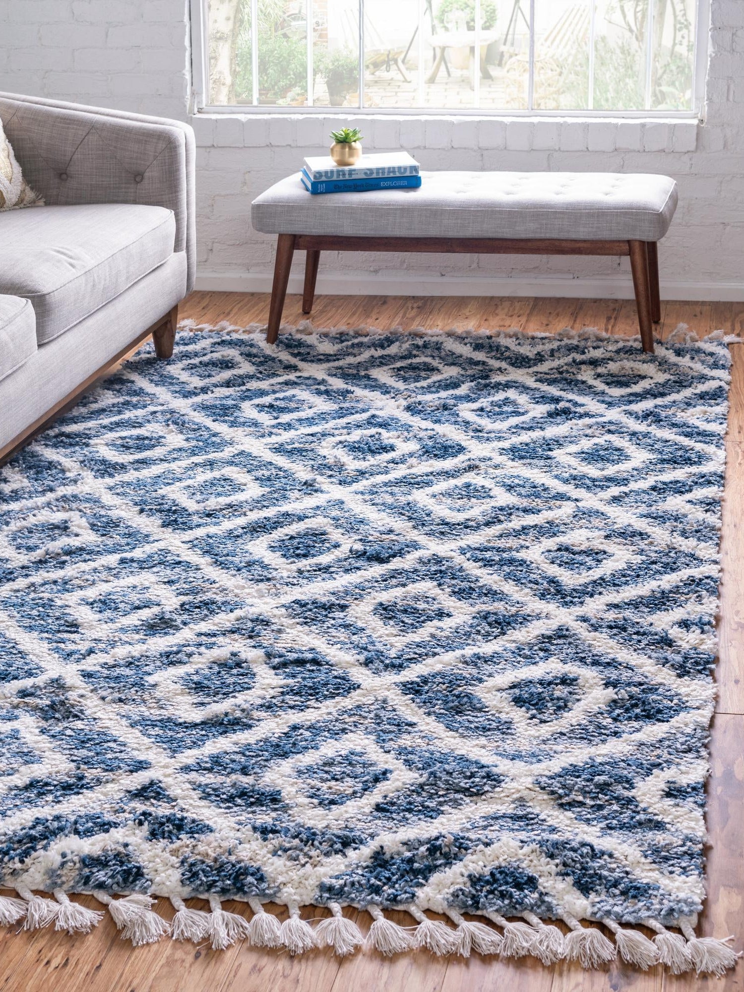Blue 1' 4 x 1' 4 Hygge Shag Sample Area Rug Thick Soft Touch Fluffy & Plush Shaggy Pile 100% Polypropylene With Jute Backing Modern Carpet