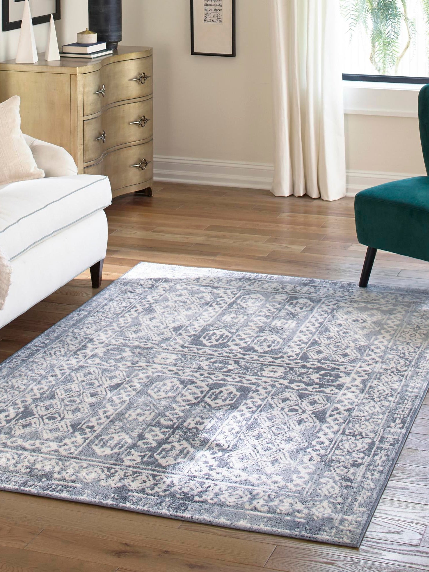 Washable Gray Blue 2' x 3' 1 Renaissance Rectangle Area Rug Easy to Clean Stain Resistant & Durable