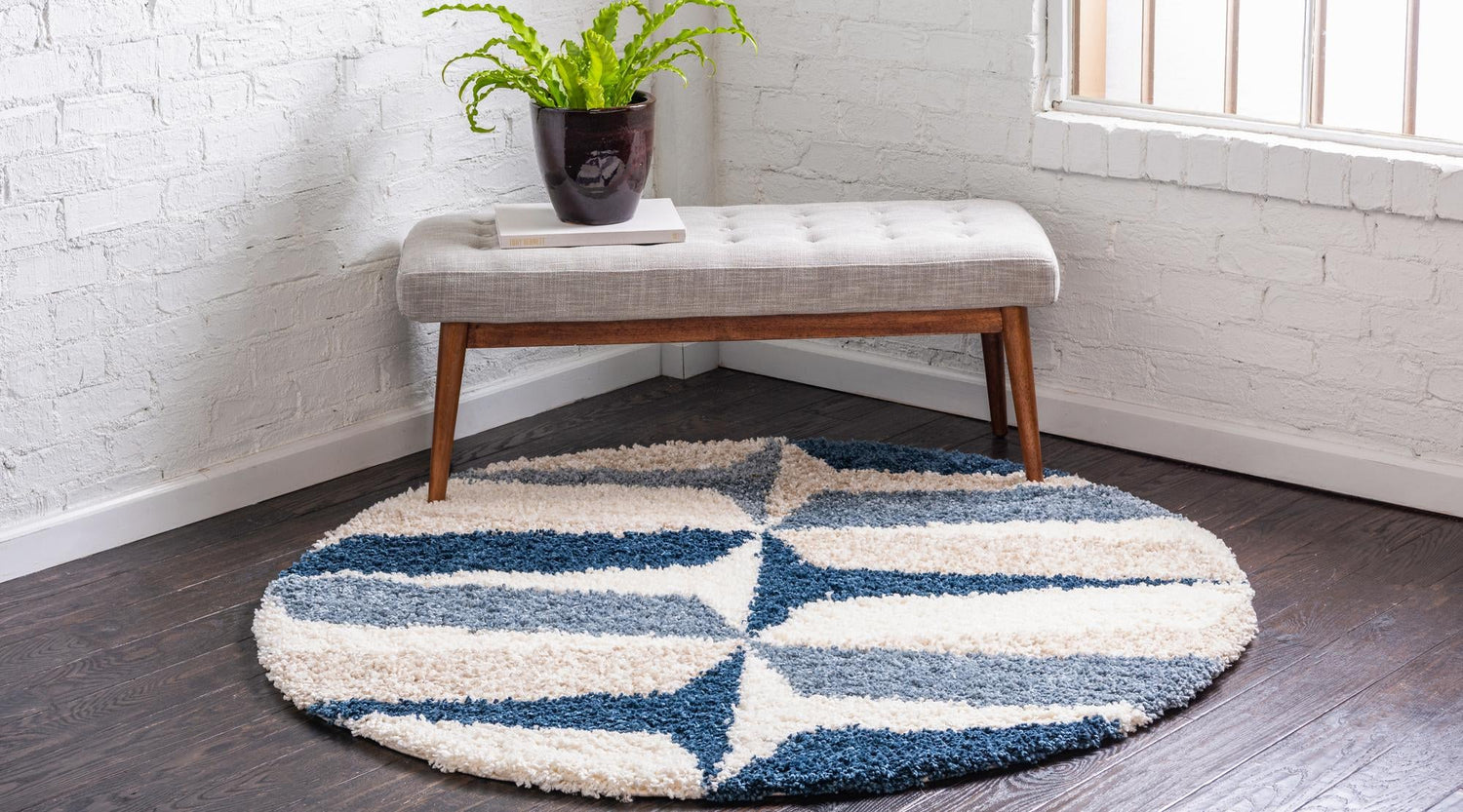 Blue 10' x 10' Hygge Shag Round Area Rug Thick Soft Touch F...