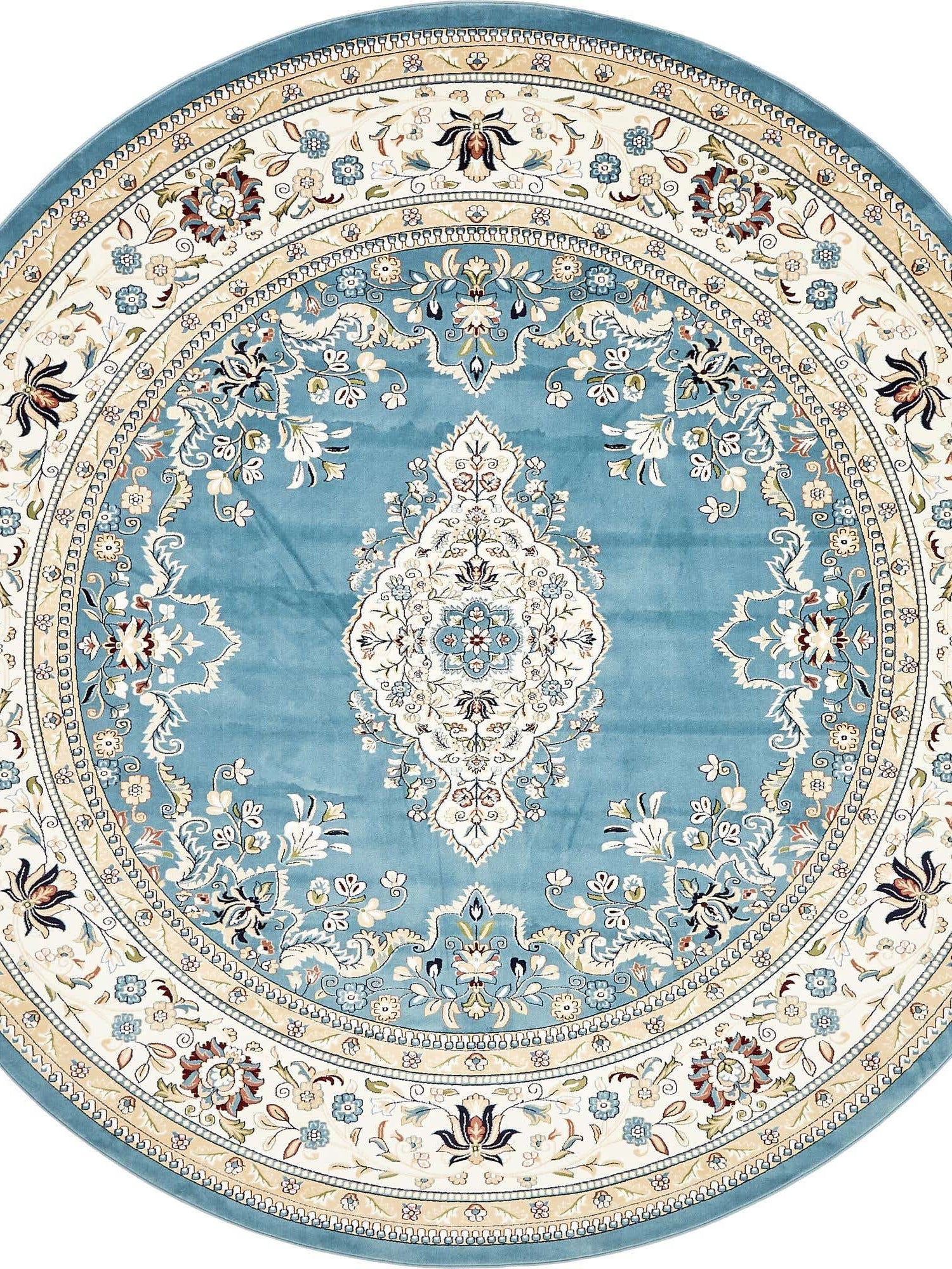 Blue 10' x 10' Narenj Round Area Rug 85% Polypropylene & 15% Polyester Traditional Classic Carpet for Living, Dining, Bedrooms, Office