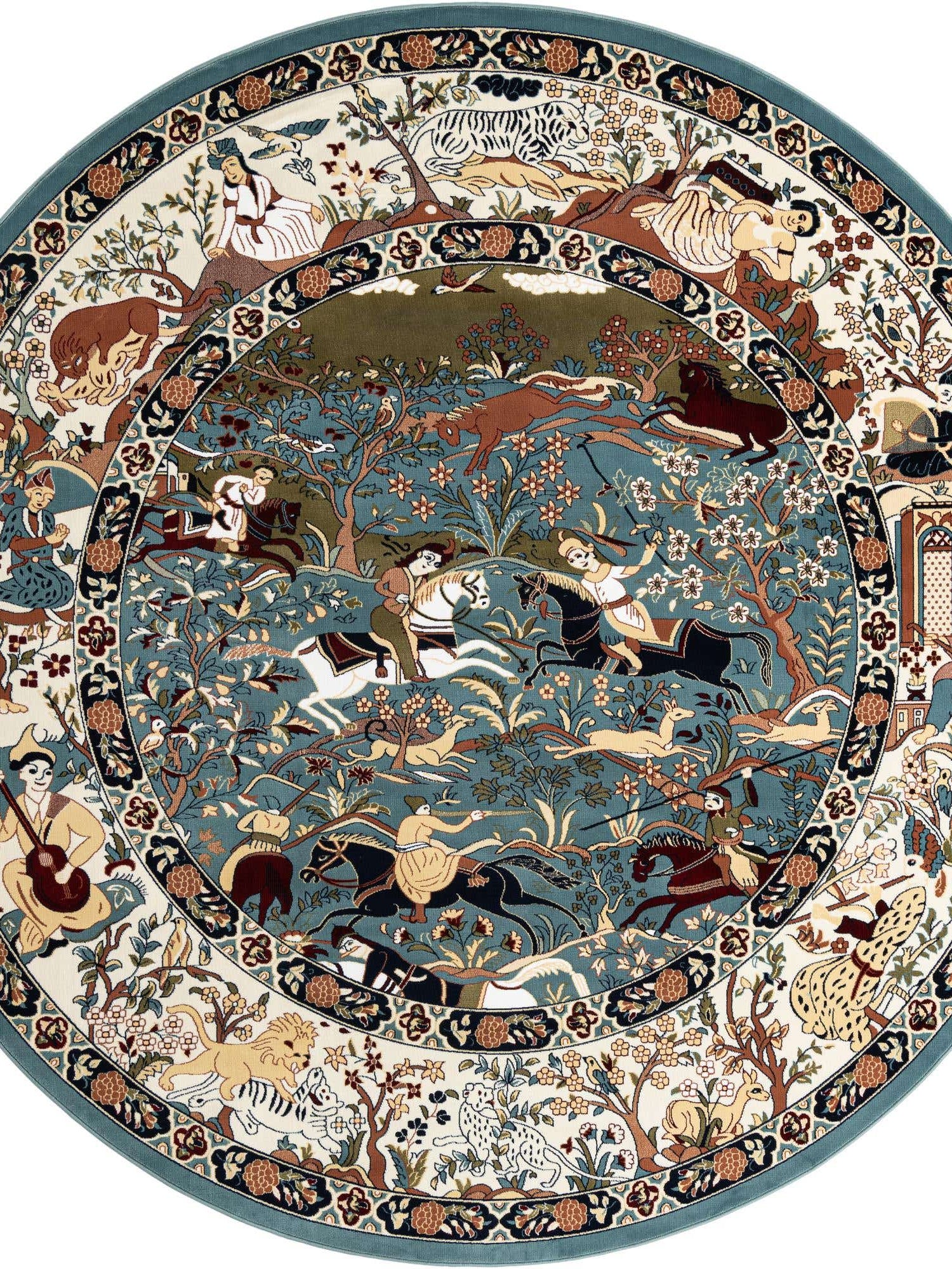 Blue 10' x 10' Narenj Round Area Rug 85% Polypropylene & 15% Polyester Traditional Classic Carpet for Living, Dining, Bedrooms, Office