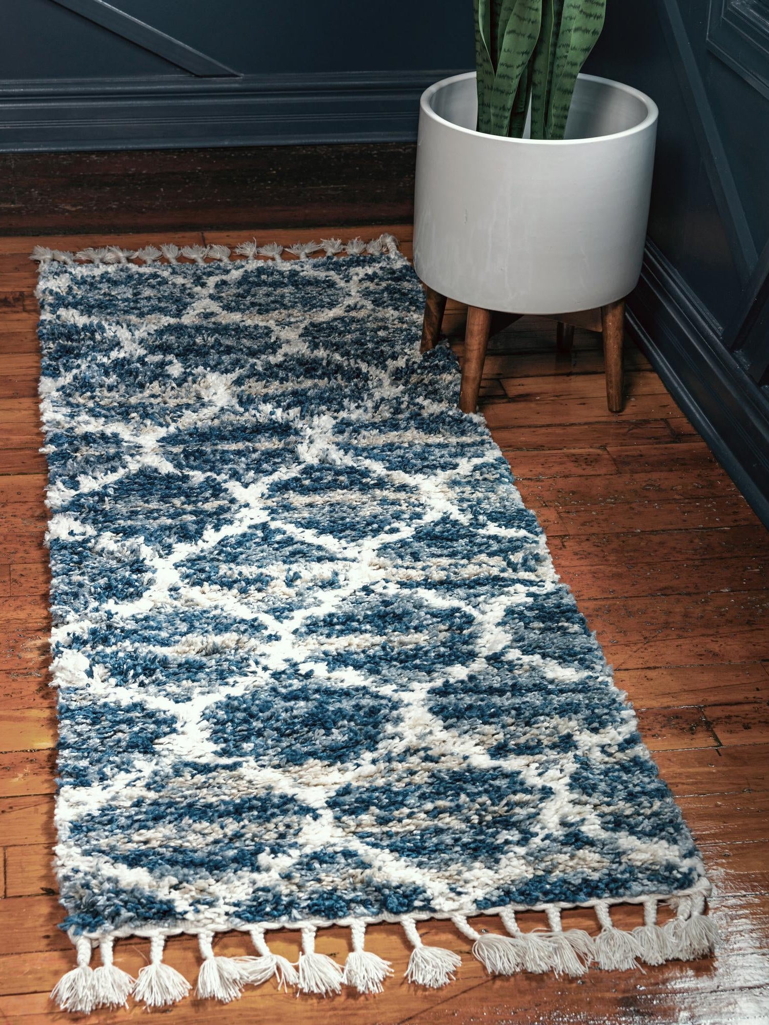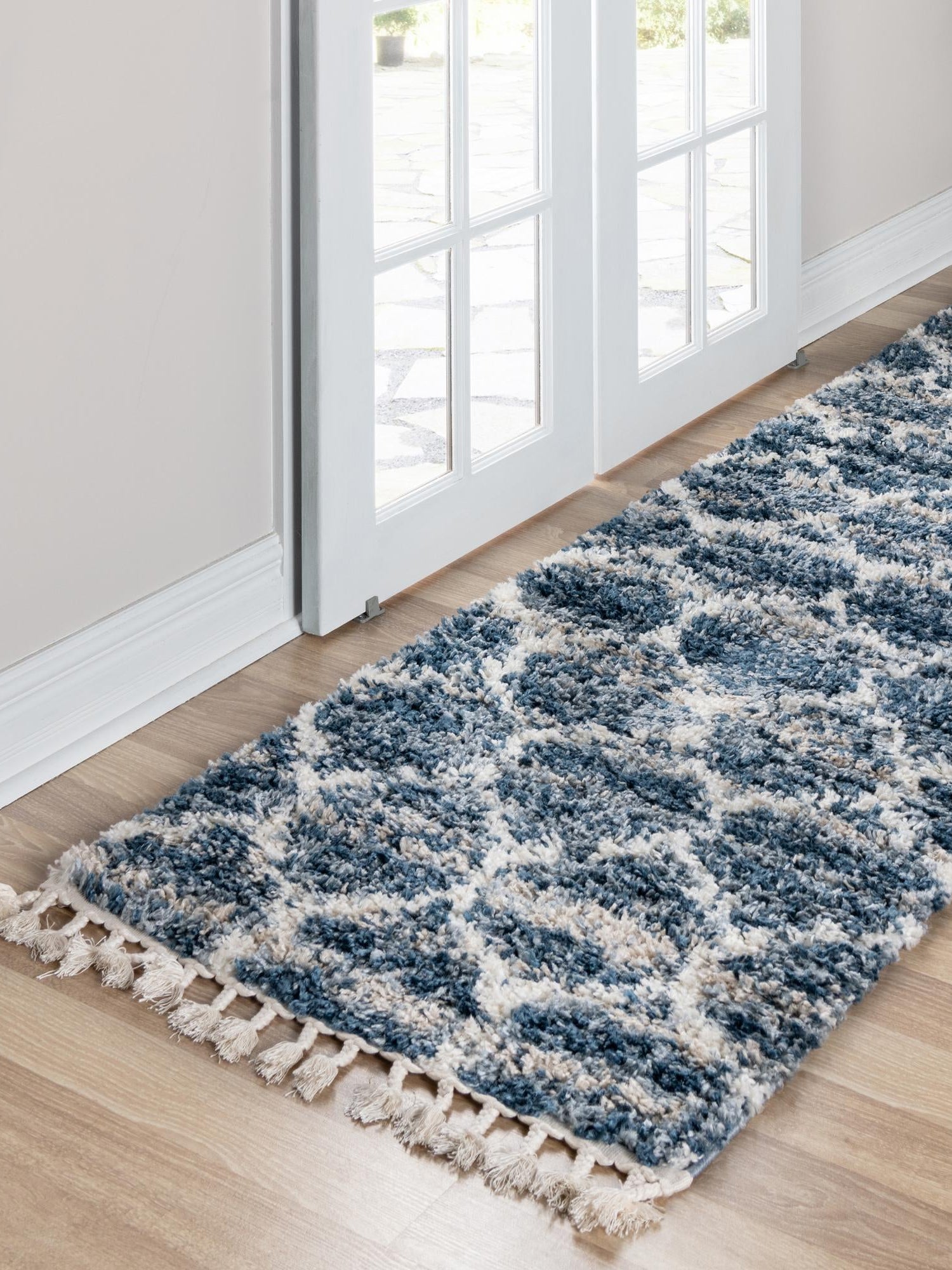 Blue 2' 2 x 6' 1 Hygge Shag Runner Area Rug Thick Soft Touc...
