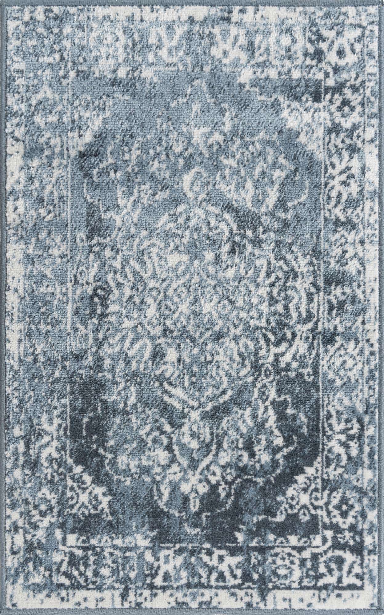 Washable Gray Blue 2' x 3' 1 Renaissance Rectangle Area Rug Easy to Clean Stain Resistant & Durable