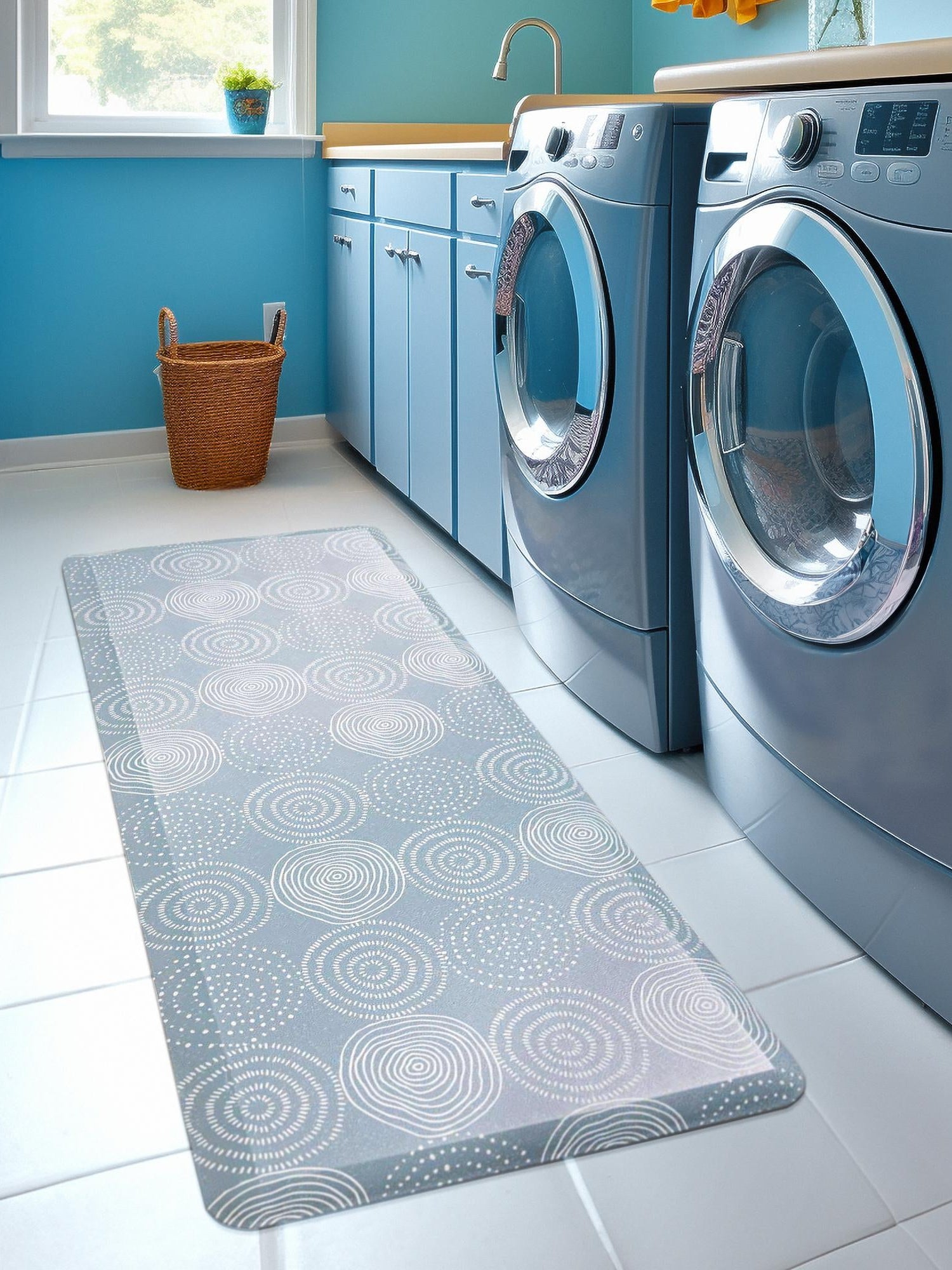 Anti-Fatigue Blue 2' x 5' Comfort Standing Mat for Kitchen, Bath, Laundry Room, Office Colorful PVC Durable Non-Slip Water Resistant Spill Proof Rug Thick Rubber