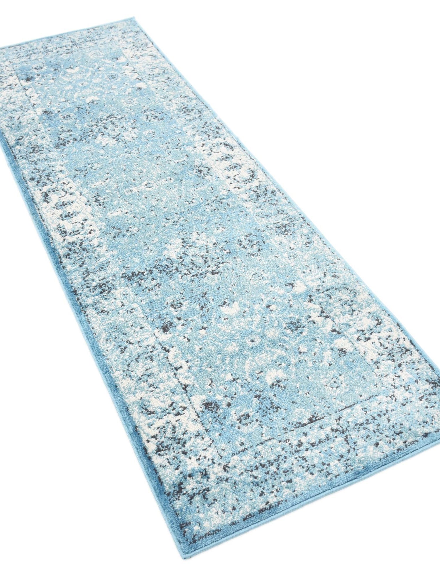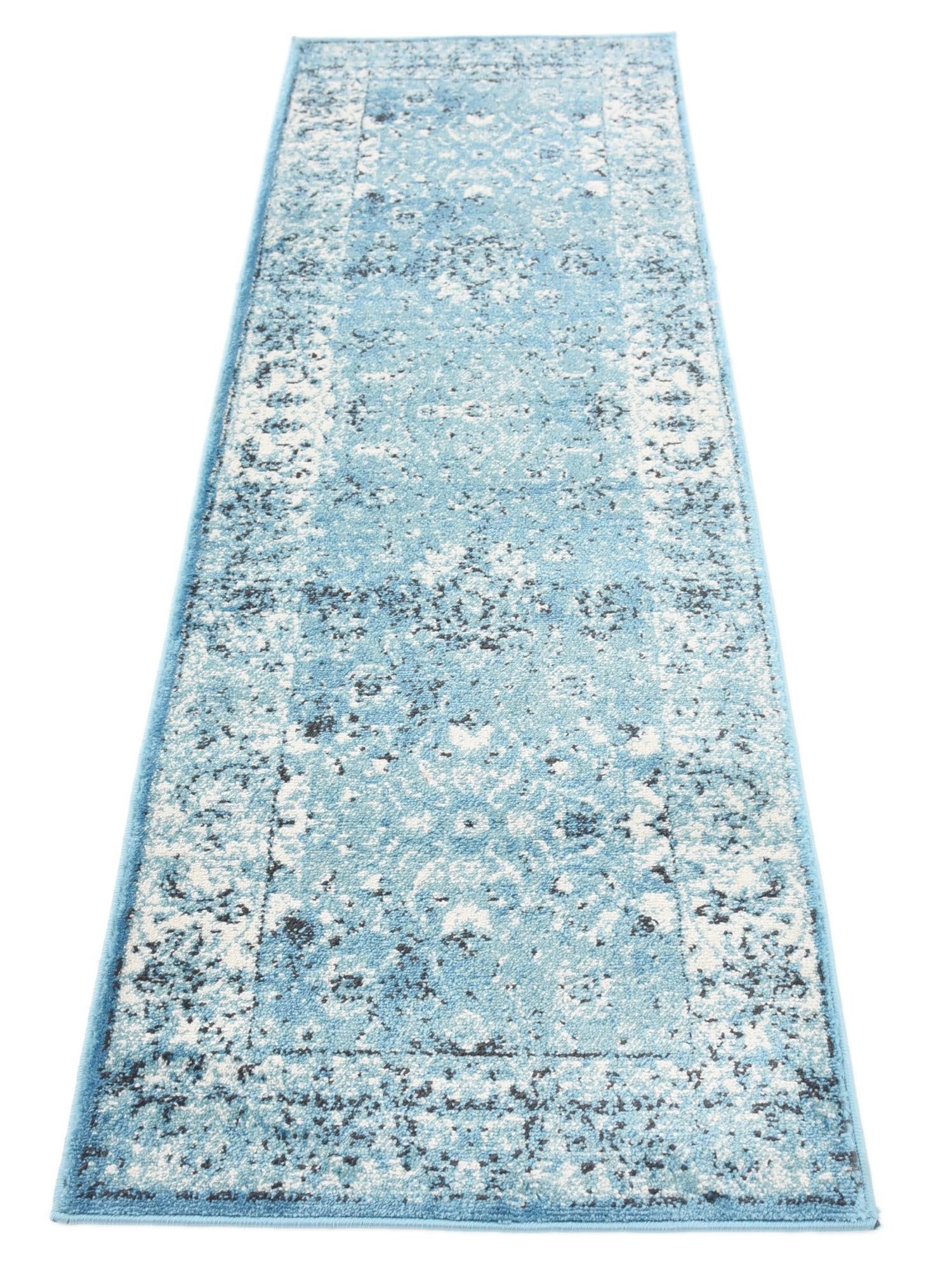 Blue 2' x 6' 1 Imperial Runner Area Rug 100% Polypropylene With Cotton Backing Traditional Vintage Distressed Design Carpet