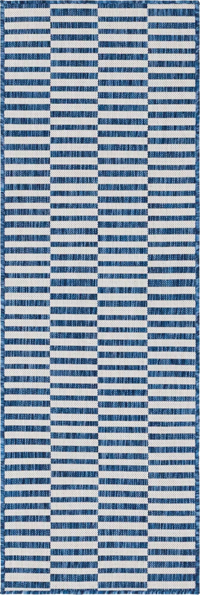 Blue 2' x 6' 1 Outdoor Striped Runner Area Rug Weather Resistant for Patio, Deck, Terrace, Balcony, Porch