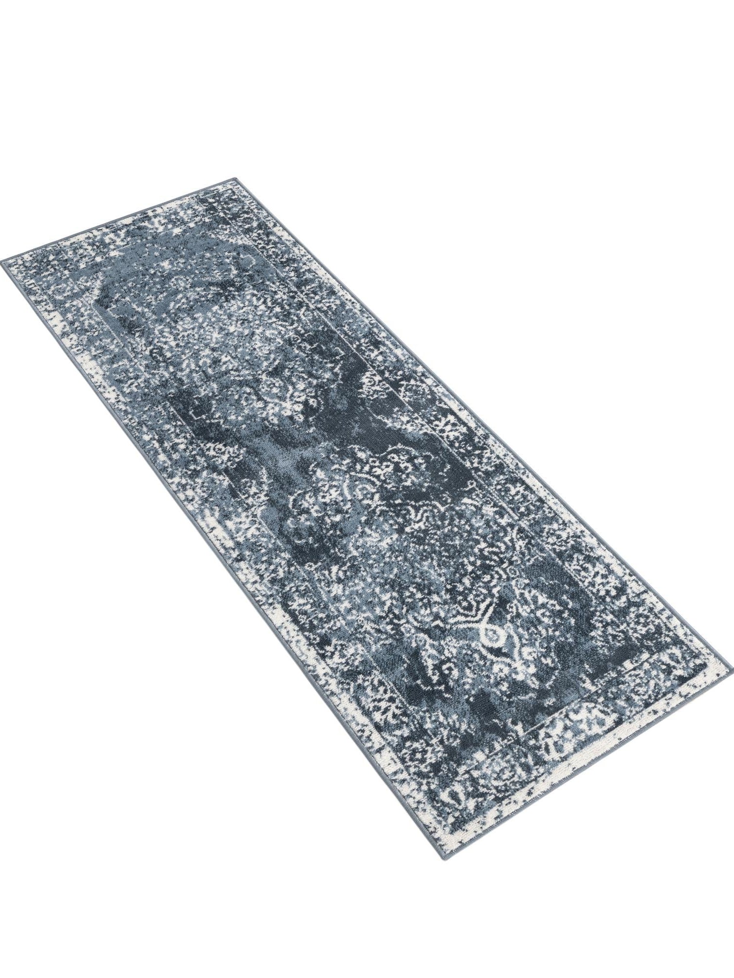 Washable Gray Blue 2' x 7' 1 Renaissance Runner Area Rug Easy to Clean Stain Resistant & Durable