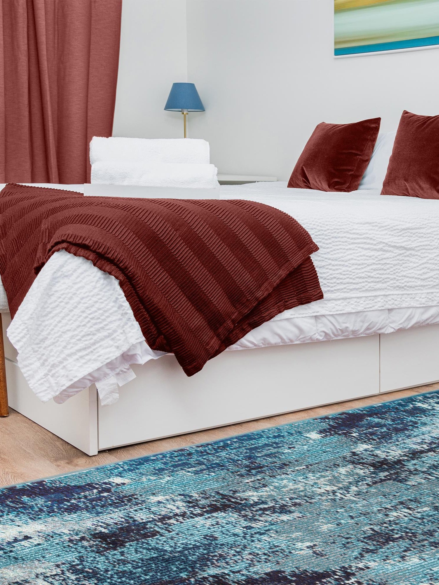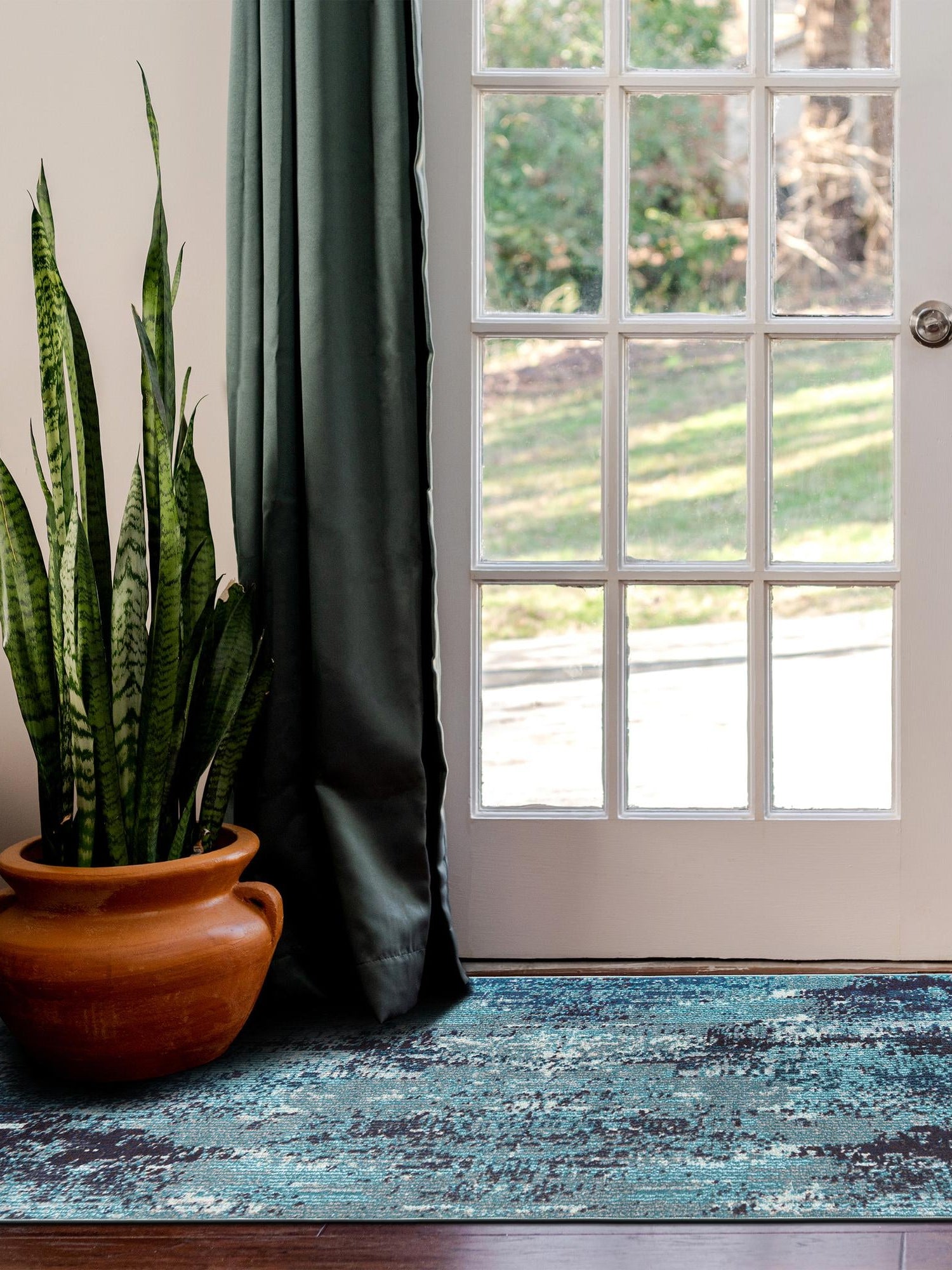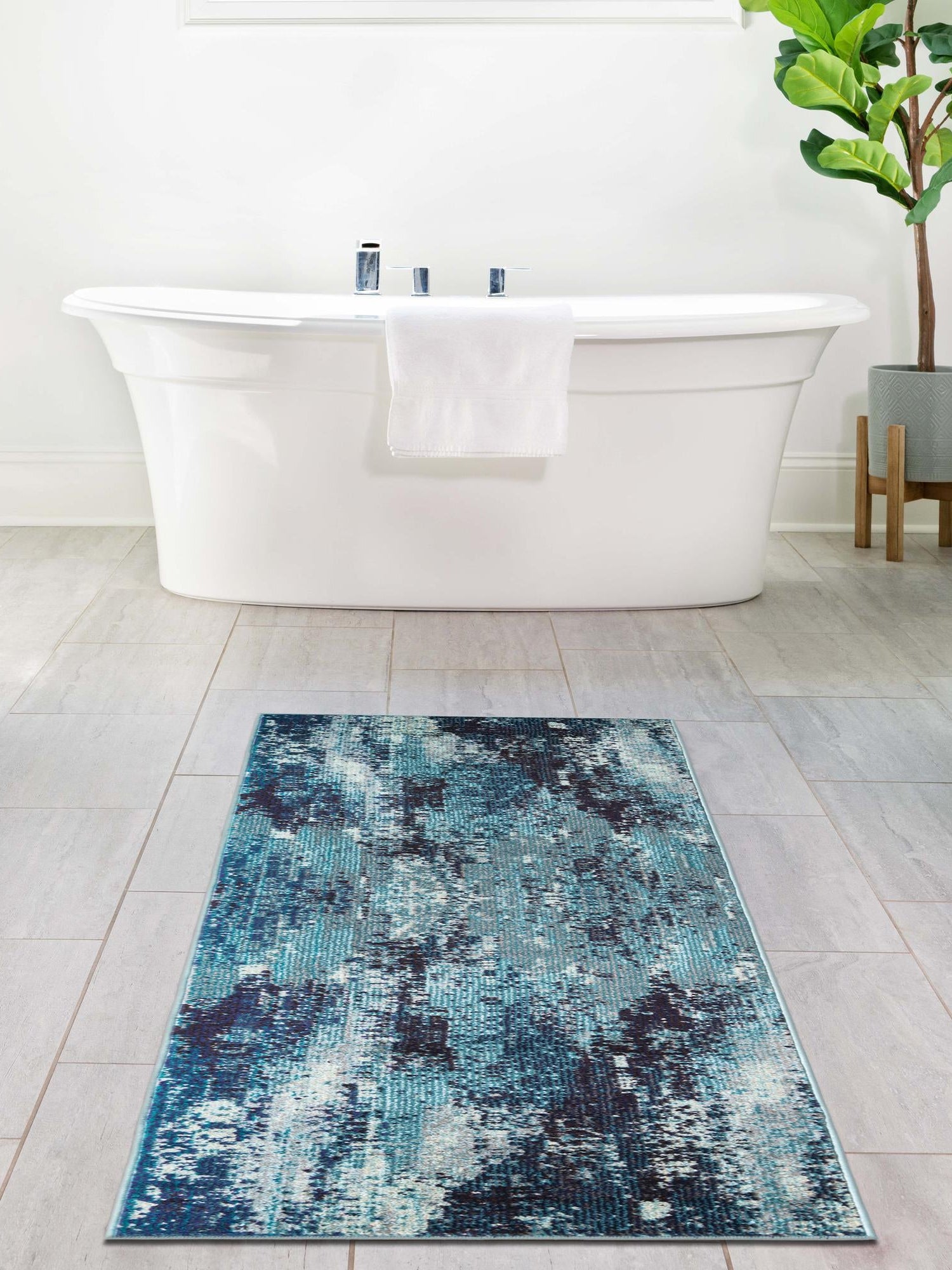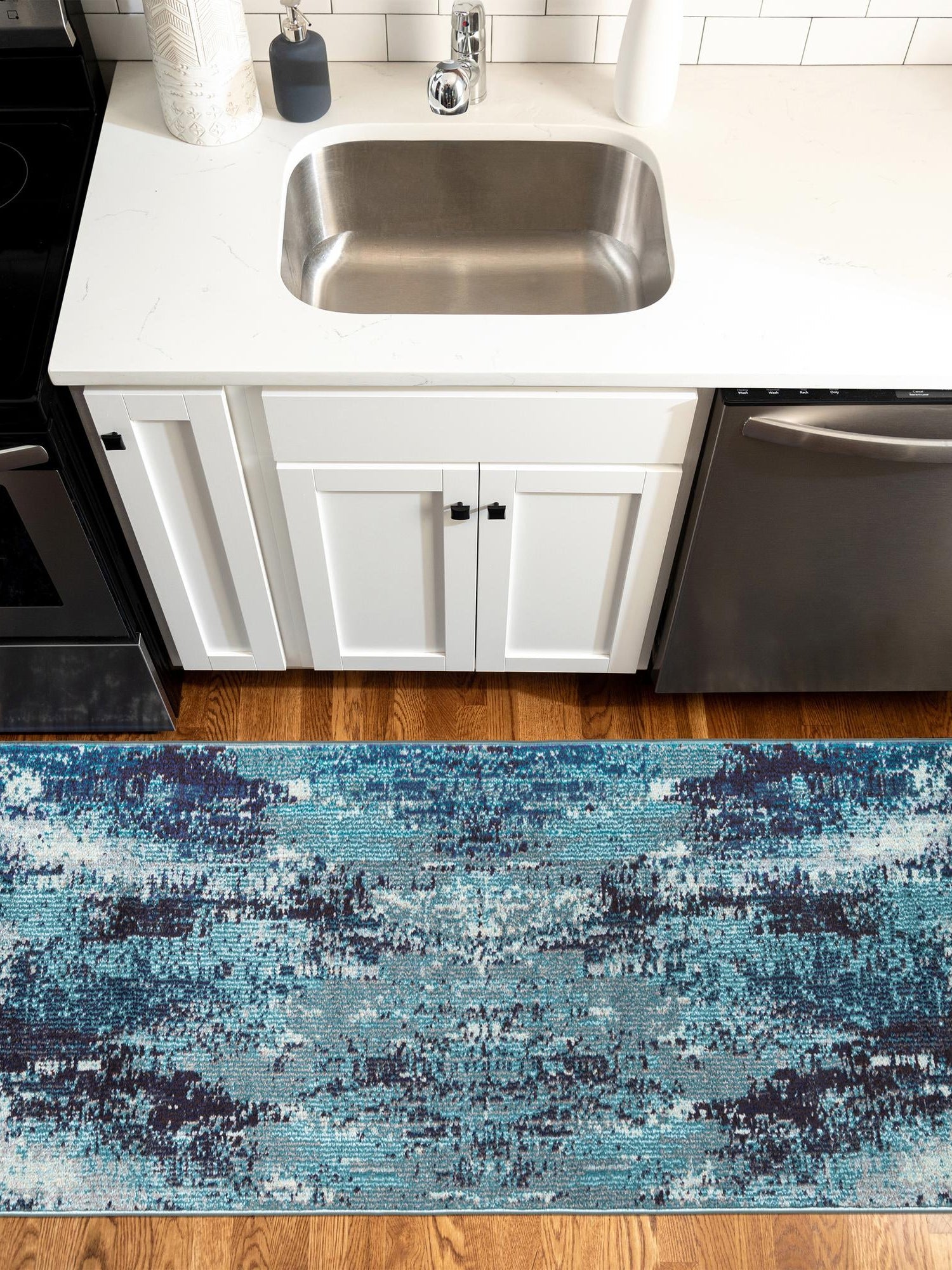 Washable Royal Blue 2' x 5' Yara Runner Area Rug Easy to Clean Stain Resistant & Durable