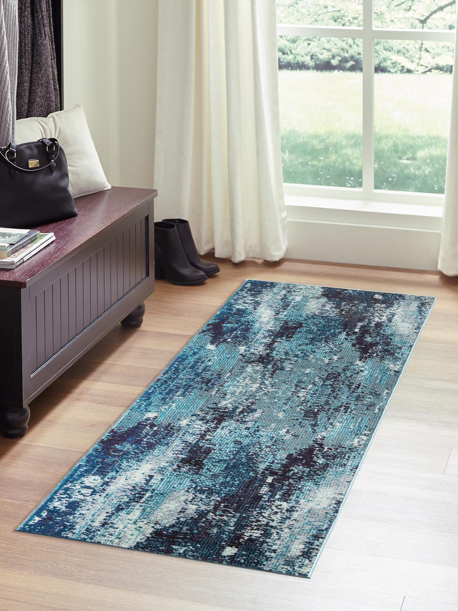 Blue 2' x 8' Jardin Runner Area Rug 100% Polypropylene With Cotton Backing Colorful & Vivid Modern Carpet for Home Decor