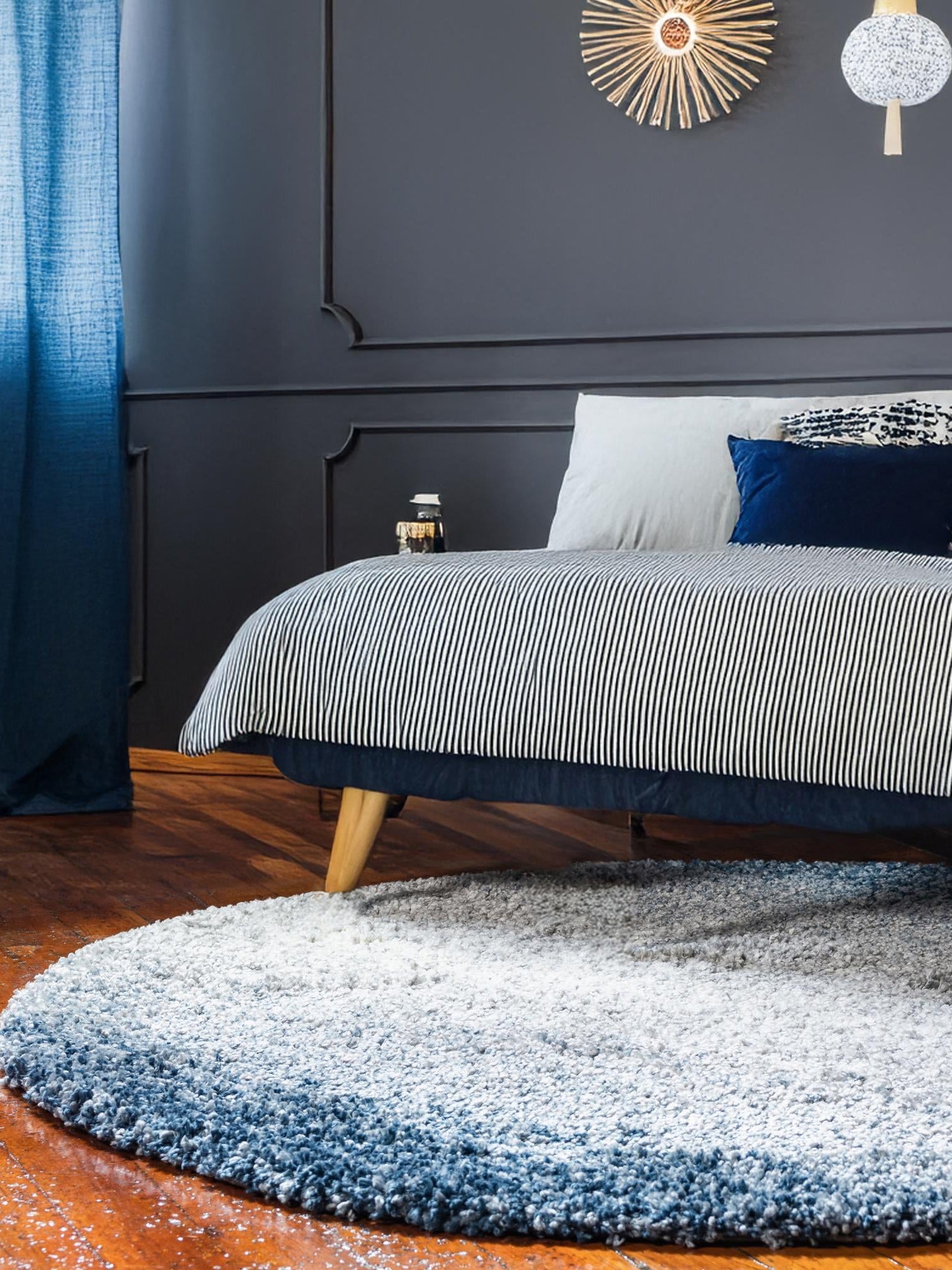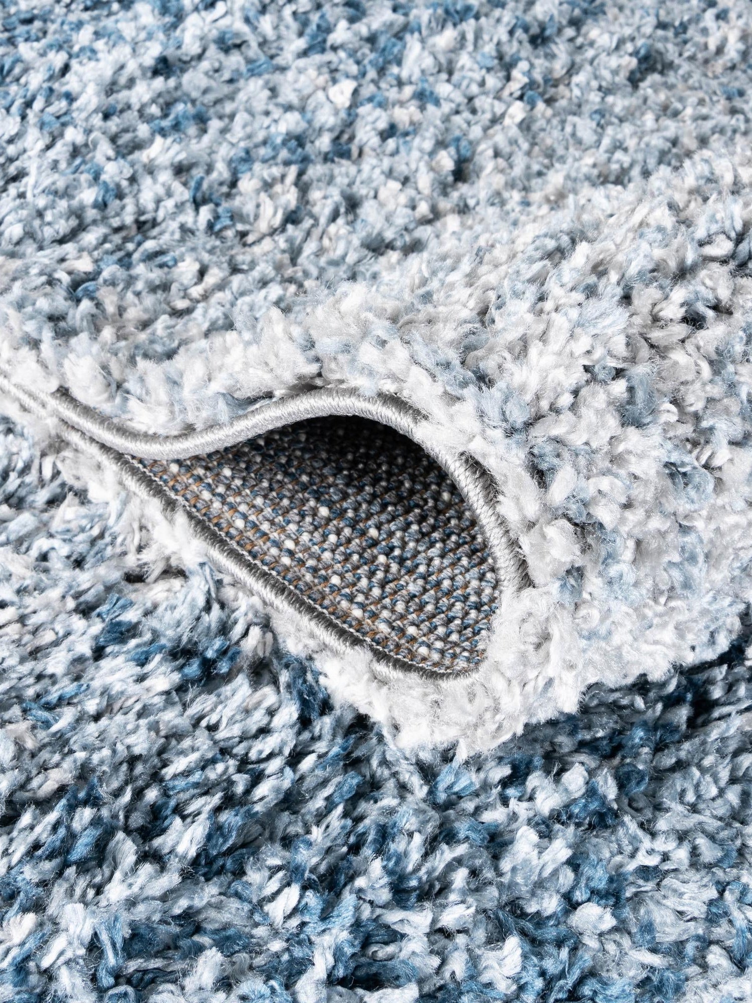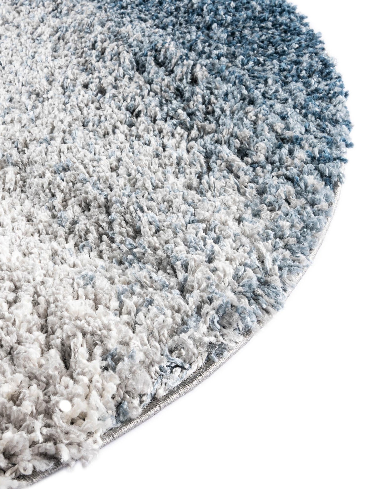 Blue 3' 3 x 3' 3 Hygge Shag Round Area Rug Thick Soft Touch Fluffy & Plush Shaggy Pile 100% Polypropylene With Jute Backing Modern Carpet