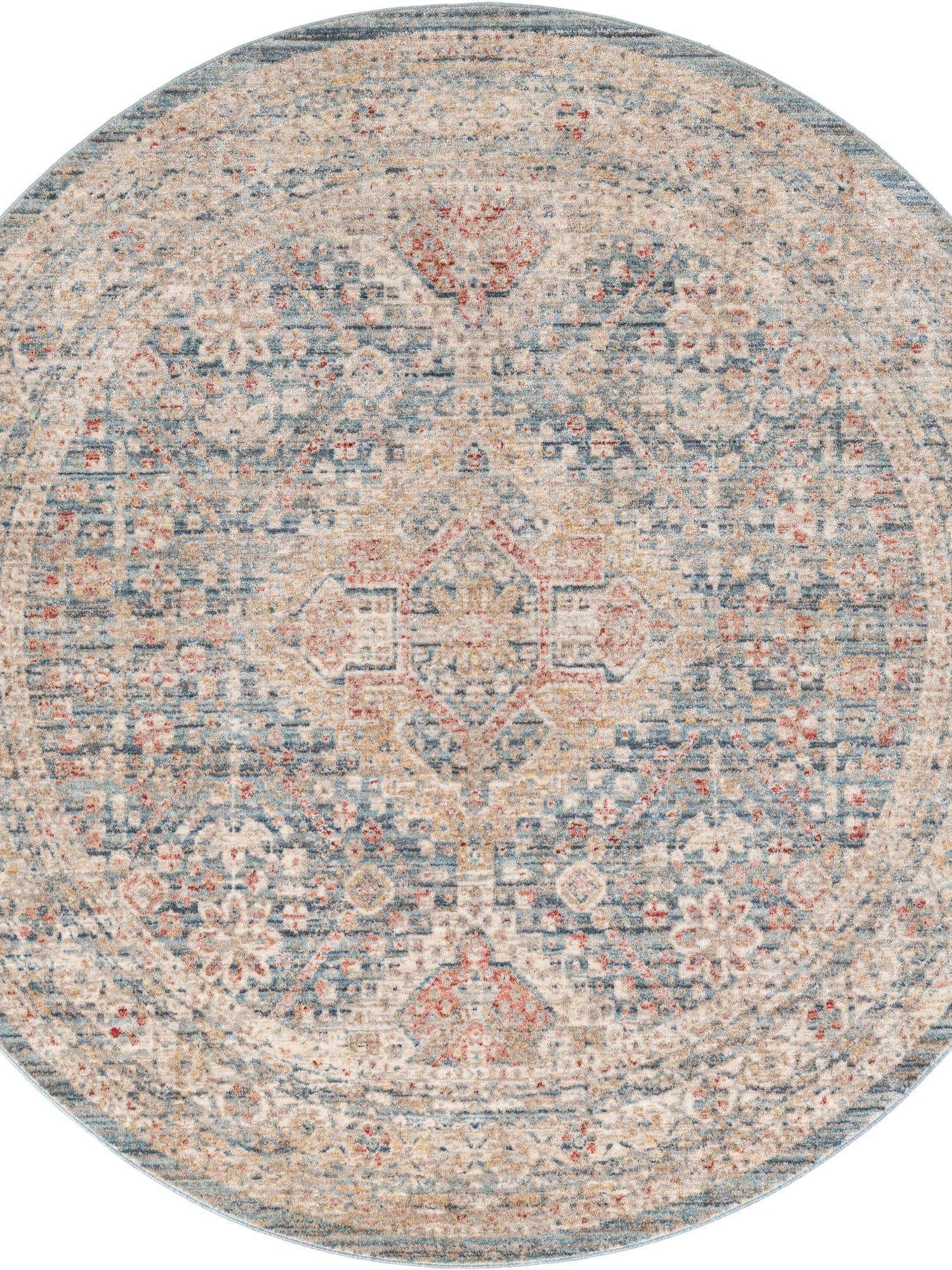 Blue 3' 3 x 3' 3 Noble Round Area Rug 100% Polyester Traditional Distressed Classic Contemporary Carpet for Home Decor