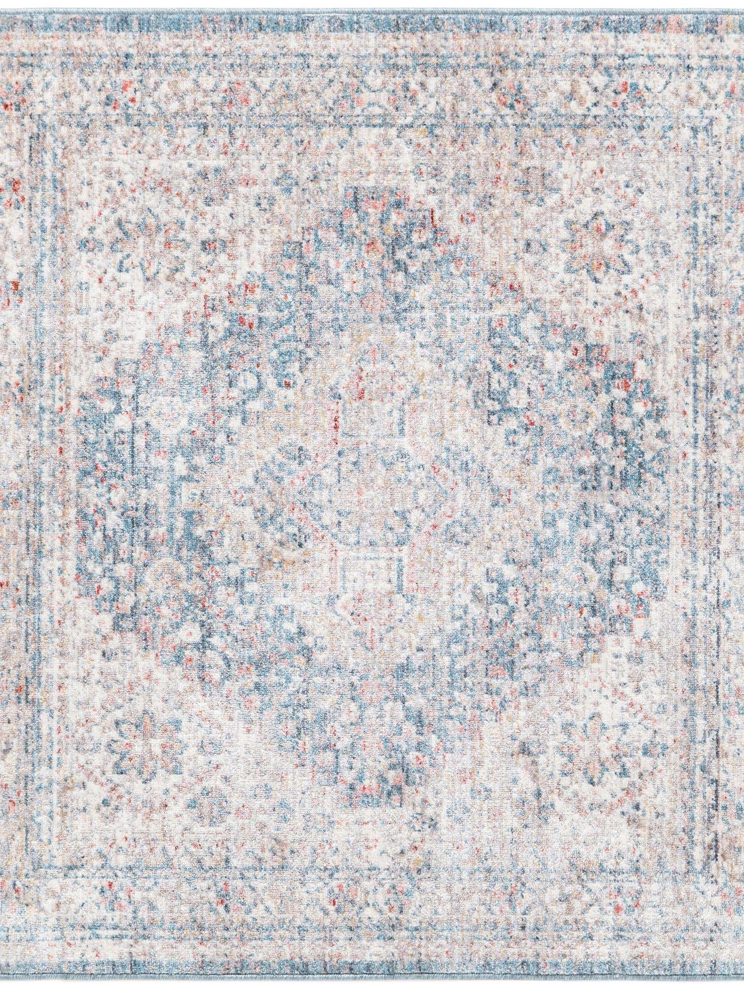 Blue 3' 3 x 3' 3 Noble Square Area Rug 100% Polyester Traditional Distressed Classic Contemporary Carpet for Home Decor